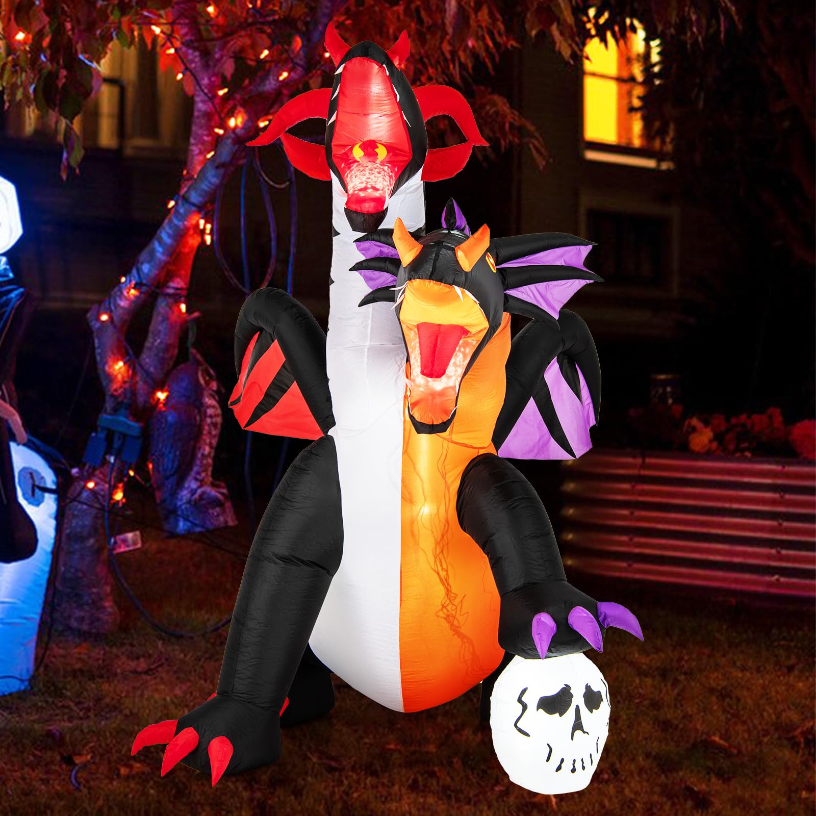 - Great Halloween Decoration: Standing at an impressive height of 8 feet, the inflatable 2-headed dragon adds a spine-chilling and captivating presence to any Halloween display. Its lifelike wings and paws are sure to both terrify and fascinate visitors.