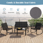 Each chair provides a gentle rocking motion, thanks to the stable base with non-slip rubber mats and adjustable stoppers. And the ergonomic seat will offer you ultimate comfort, too. The seat fabric is upgraded to ensure both comfort and durability, while also being breathable and quick-drying. Furthermore, crafted with strong metal structure, both the coffee table and rocking chairs offer reliable support and resist rust. And the elegant tempered glass tabletop of the coffee table adds a touch of sophistication and is firmly fixed by 4 suction cups. Whether it’s in your backyard, by the poolside, or on your balcony, this set promises a safe and sturdy option for outdoor relaxation. Sit back, unwind, and indulge in comfort and ease with this 8-piece rocking bistro set.