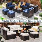 - Extra Cushion Cover Sets: The 8-piece outdoor furniture set will come with non-fading navy cushion cover sets, including 2 covers for the cushion of armless sofas, 2 covers for the cushion of corner sofas, 2 covers for cushion of ottomans and 4 covers for back cushions.