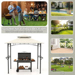 - Thoughtful Features: The gazebo is equipped with 2 side shelves for convenient storage of grilling essentials, along with 7 hooks for hanging utensils and accessories. Additionally, it comes with a ceiling hook, perfect for suspending a light, fan, or decoration (not included).