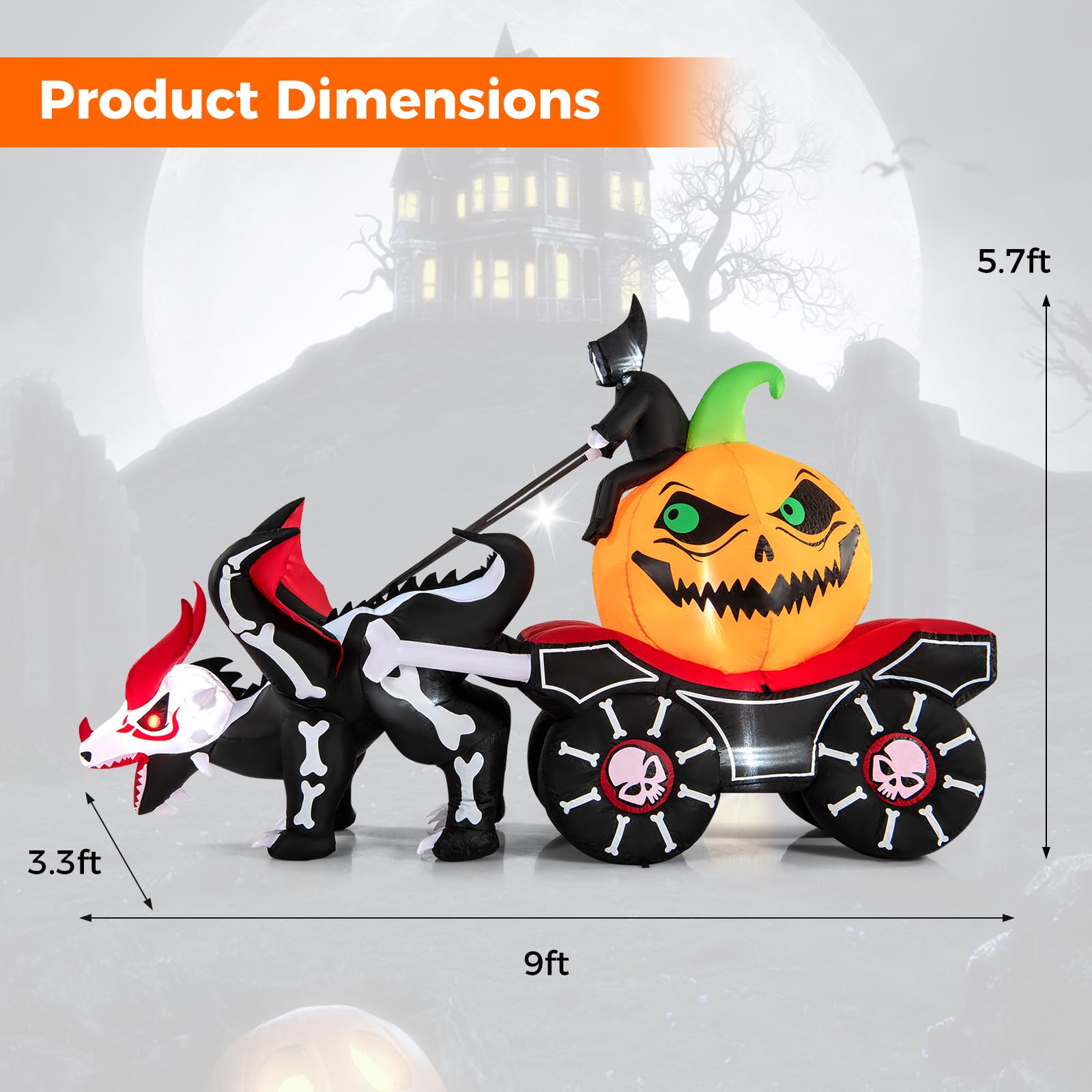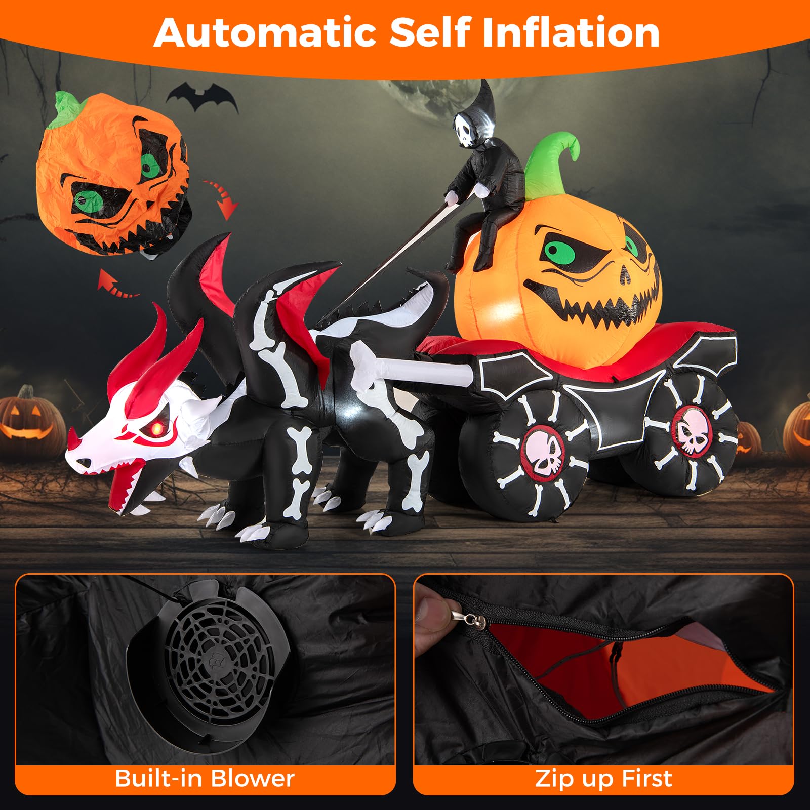 - 7 Bright LED Lights: Illuminate your Halloween festivities with 7 energy saving and eye-catching LED lights integrated within the carriage. These lights cast a haunting glow, ensuring your inflatable decoration is visible and captivating even in the darkest of nights.