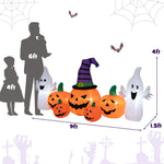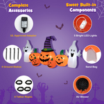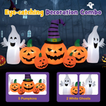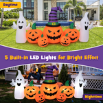 - Ideal Halloween Decoration: The inflatable Halloween decoration comes with 5 pumpkins of different sizes and 2 white ghosts, wears a witch's hat and different faces, and offers an attractive appearance and fits the Halloween atmosphere. Plus with a 9 ft length, the Halloween pumpkin is eye-catching and impressive.