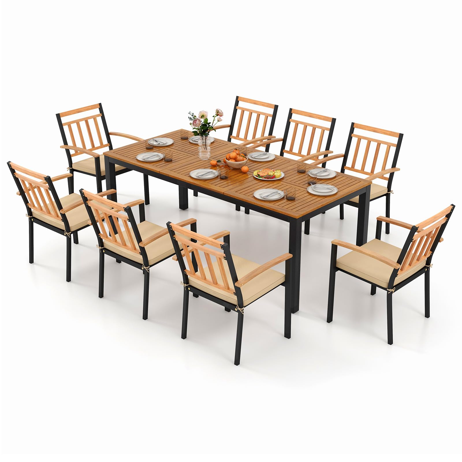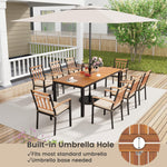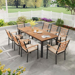 - Spacious 9-Piece Dining Set: This outdoor dining set includes a large rectangular table and 8 chairs, which is ideal for family dinners or entertaining guests in your yard, porch, patio, poolside, or deck.