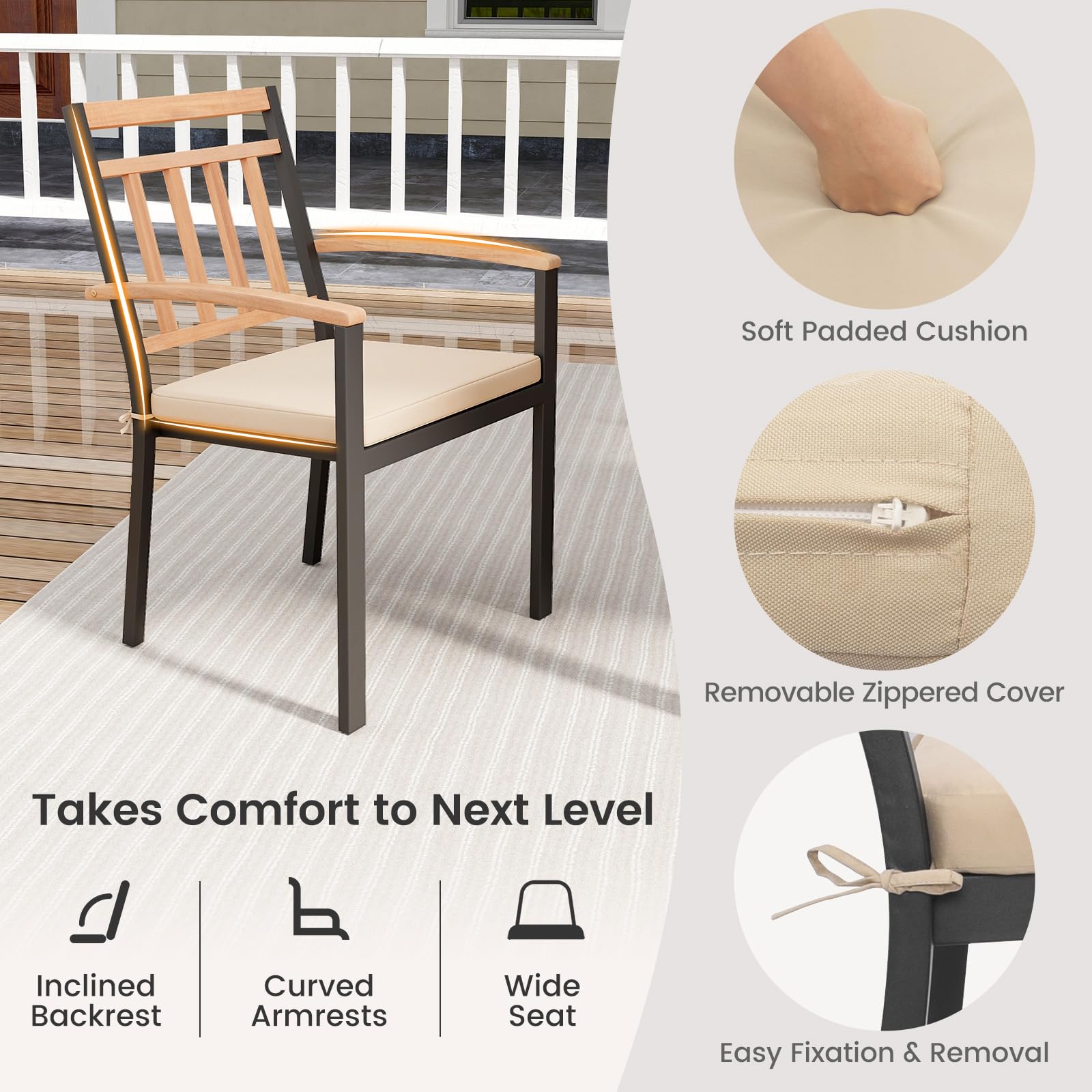 - Enhanced Comfort & Easy Maintenance: Each chair features an inclined backrest, wide seat and curved armrests, offering great support and comfort. Moreover, the removable soft padded cushion takes comfort to next level. With the smooth zipper design, the cushion cover can be easily removable and washed.