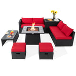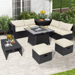 This 9-piece outdoor PE wicker sectional sofa with a gas fire pit table set will be the perfect choice for your outdoor life!