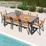 - 9-piece Patio Set: This 9-piece patio dining set with a rectangular table (79”L x 35.5”W x 29.5”H) and 8 armchairs (24”L x 23”W x 34”H) provides ample seating and a welcoming atmosphere for your guests.