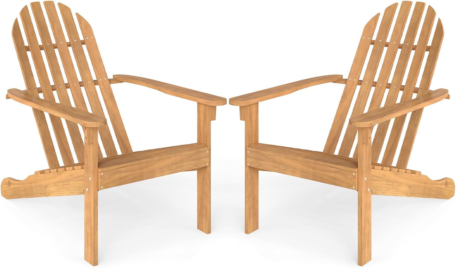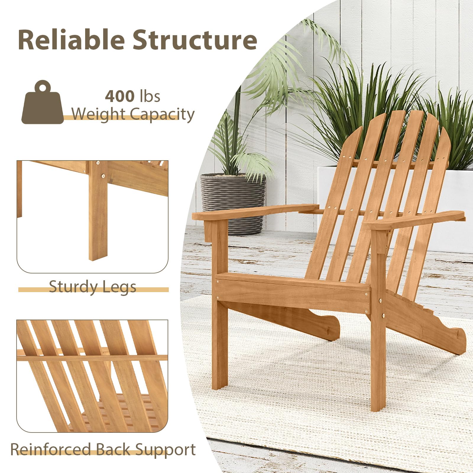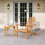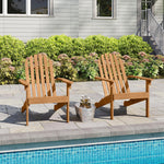 Experience outdoor comfort with our Adirondack chair. This Adirondack chair is a solid acacia wood creation that is not only built to last but also inviting with wooden texture. This chair, with its inclined backrest and curved seat, offers ergonomic support for relaxation, while the wide armrests provide added ease. Additionally, its robust construction, complete with reinforced back support and sturdy legs, can handle up to 400 lbs, ensuring a reliable addition to any outdoor space. Plus, the smooth surface is effortless to clean, making maintenance a breeze. Whether by the fire pit, on the porch or in the garden, this Adirondack chair is versatile enough to fit any setting, enhancing your outdoor living experience with its classic design.