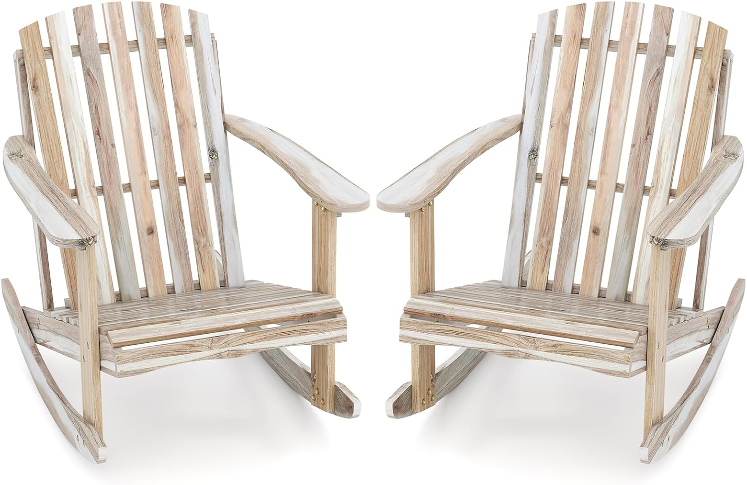 Designed with a solid wood frame that supports up to 400 lbs, the patio rocker promises both durability and comfort. The 100° inclined backrest, spacious seat and wide armrests invite you to unwind in style. Easily customize its smooth, splinter-free surface with your favorite paint or stain to fit different outdoor decorations. Moreover, the gentle rocking design of the chair naturally calms the mind and reduces stress and fatigue. Bring timeless rustic charm to your garden, porch, or poolside space with this ergonomic Adirondack rocking chair.