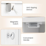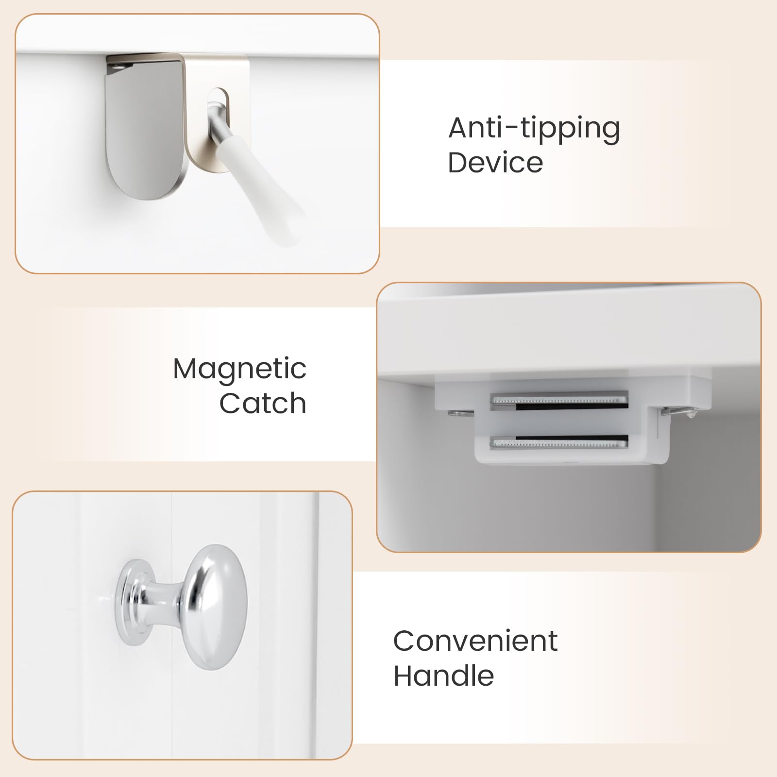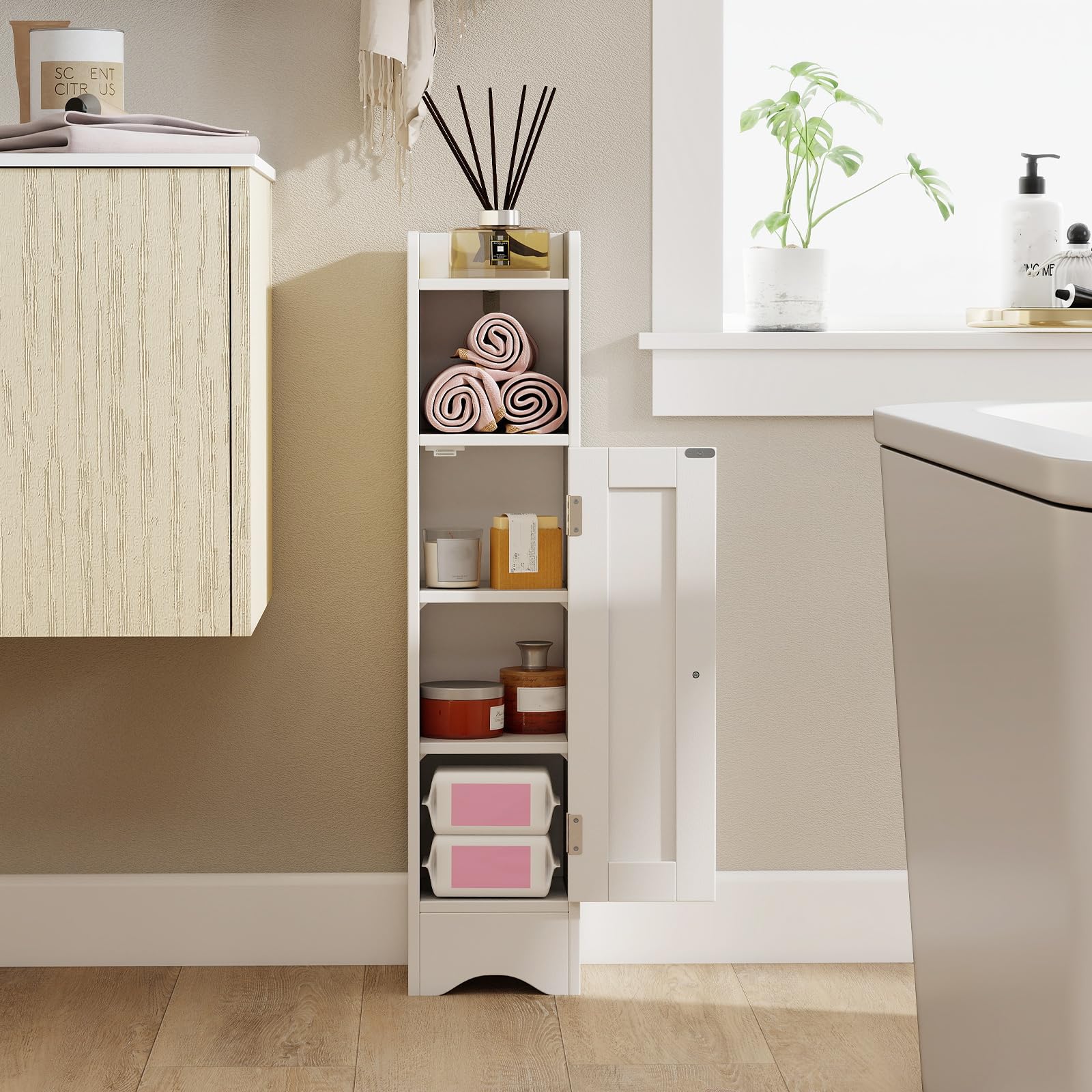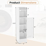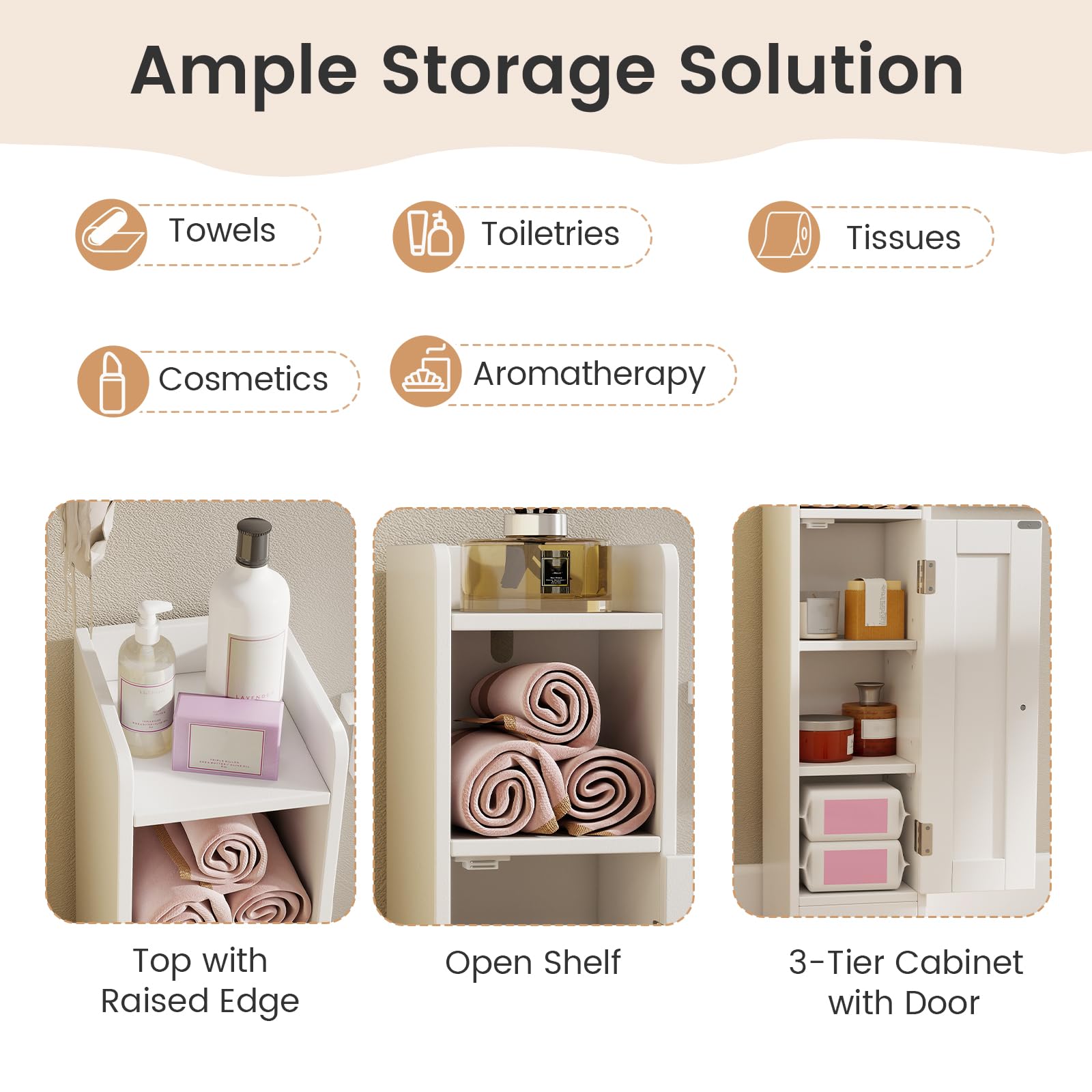 This 5-tier cabinet combines elegance and practicality, offering ample space and versatility in a compact design. Its wide top with raised edge provides a secure place to store items, while its magnetic door compartment with handle ensures easy access to frequently used essentials. There are also 2 adjustable shelves, each with 3-position adjustment for you to customize your storage freely. Additionally, this narrow toilet paper holder fits effortlessly into small corners, making it ideal for bathrooms, entryways or living rooms with limited space. Plus, security is ensured with anti-tipping device for your peace of mind.