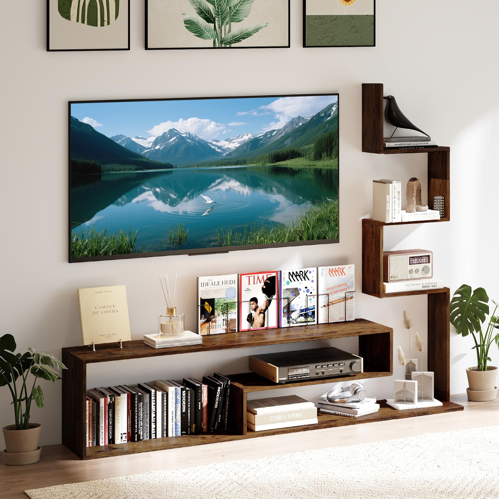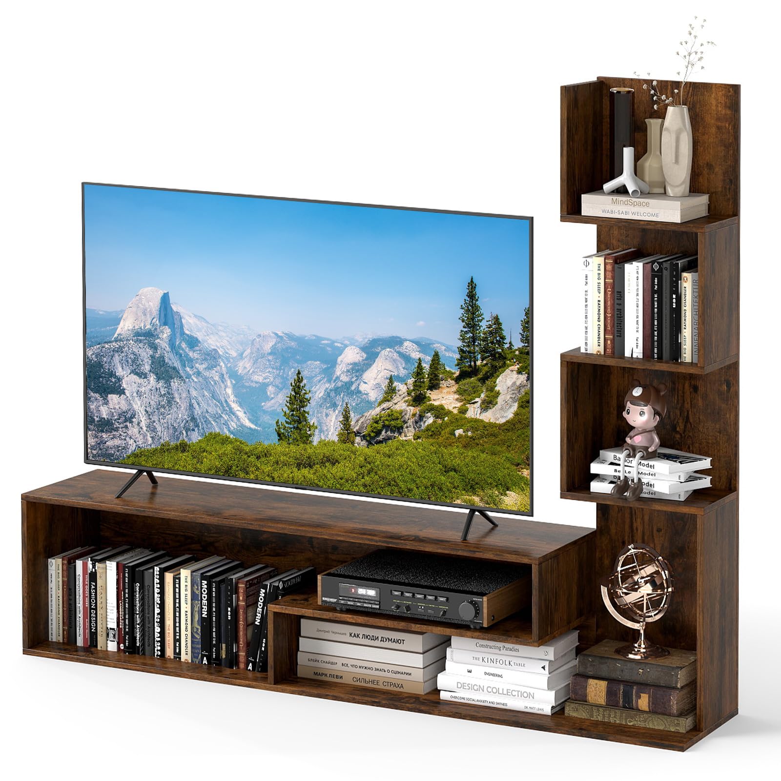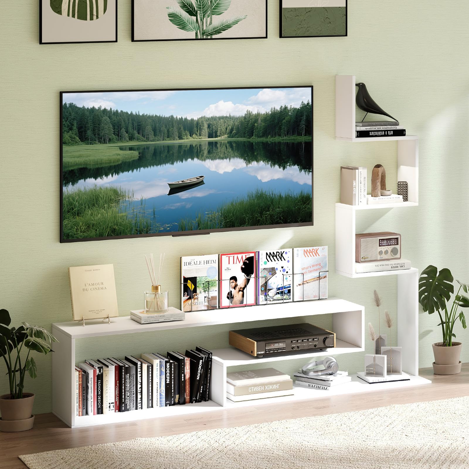 This media console table features multiple open shelves for roomy storage space, and a stable tabletop suitable for TVs up to 50". This TV stand also ensures durability and stability, with added safety features like anti-toppling devices. The sleek design effortlessly fits into various decoration styles, making it a great addition to your living room, hallway, and more.