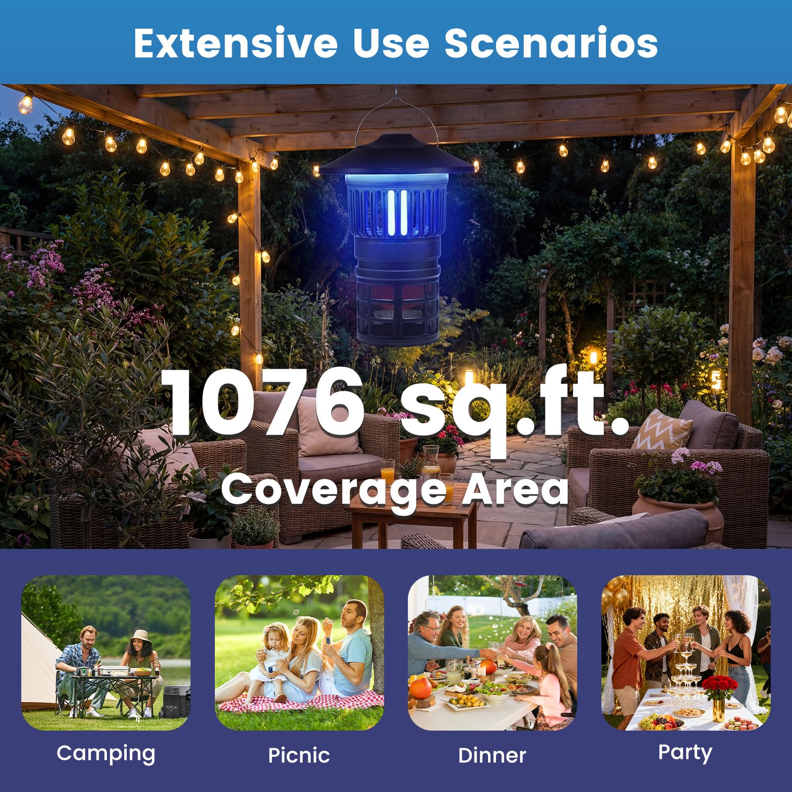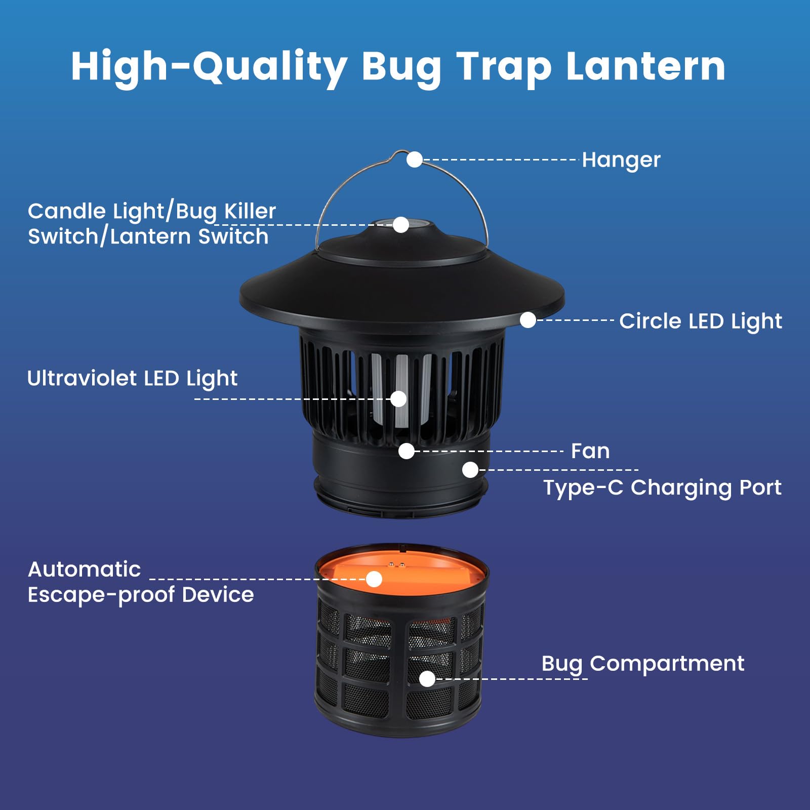 Bug attraction mode with 2-level blue light for diverse bug-catching needs