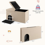 The litter box enclosure provides more privacy space for cat while ensuring less smell and mess for home. It discreetly conceals the litter tray, providing your cat with a private space. The carbon cotton filter also helps to contain any unwanted odors. And the urine proof & waterproof litter mat prevents tracking and keeps your floors clean. Made to used as a cat litter box enclosure, this multifunctional hidden furniture serves as a cozy upholstered bench. Other than that, the enclosed litter box with flip-up lid allows for easy access during cleaning. The cat litter box enclosure is quite a practical solution for cat owners looking to keep their homes clean and odor-free.