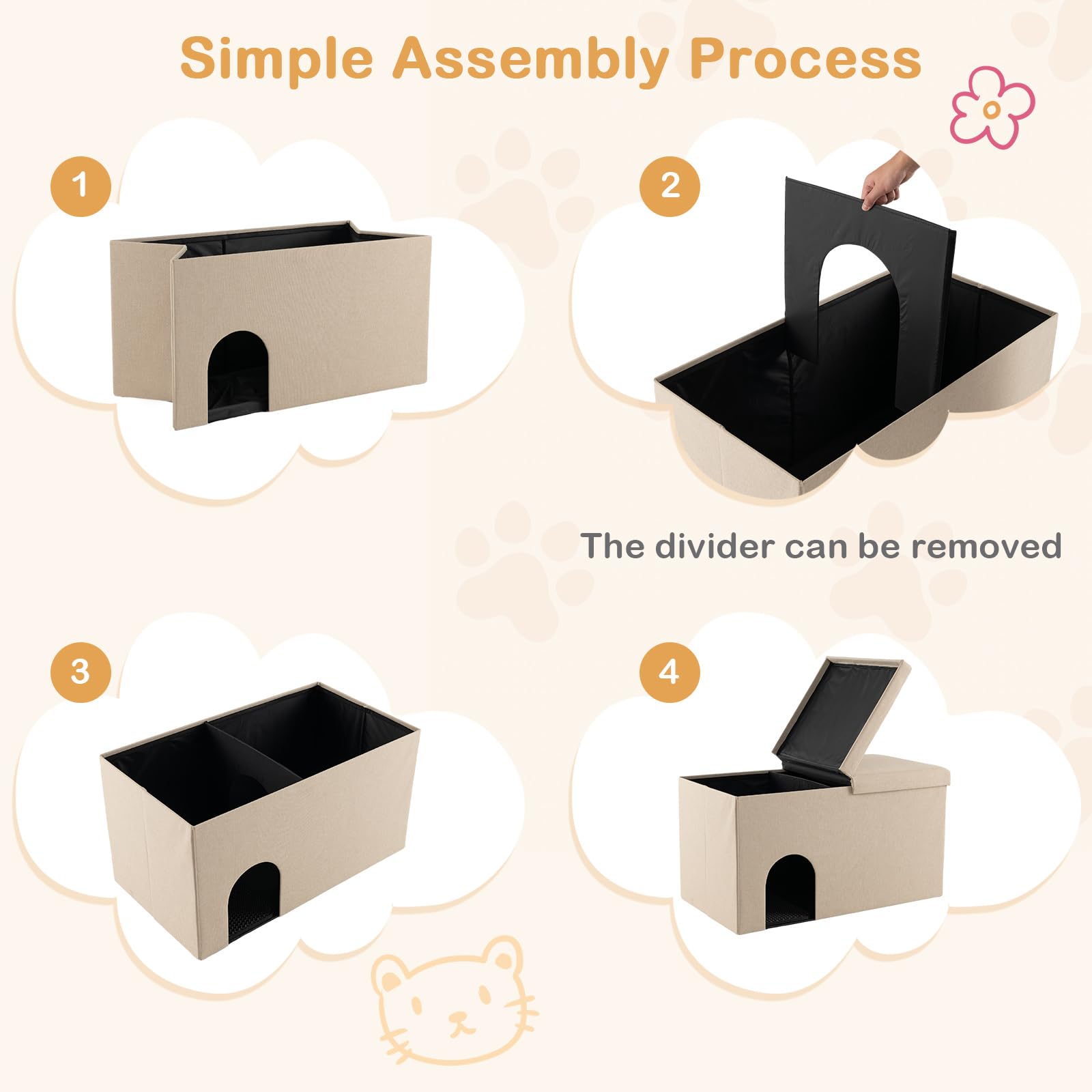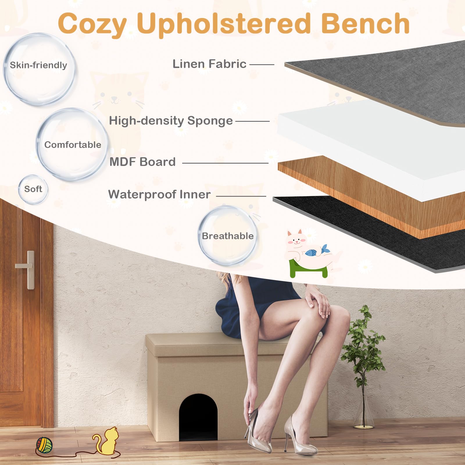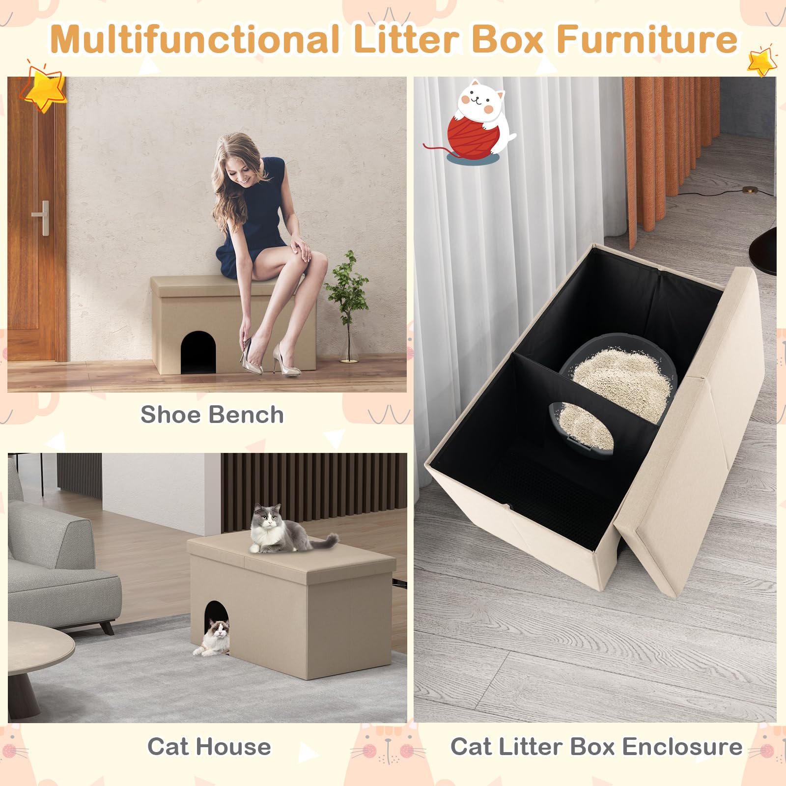 - Multifunctional Litter Box Furniture: This hidden furniture doubles as a cat house and shoe bench. The breathable linen fabric upholstery and high-density sponge filling is skin-friendly and soft, providing a comfortable seating area for shoe changing and bearing up to 440 lbs.