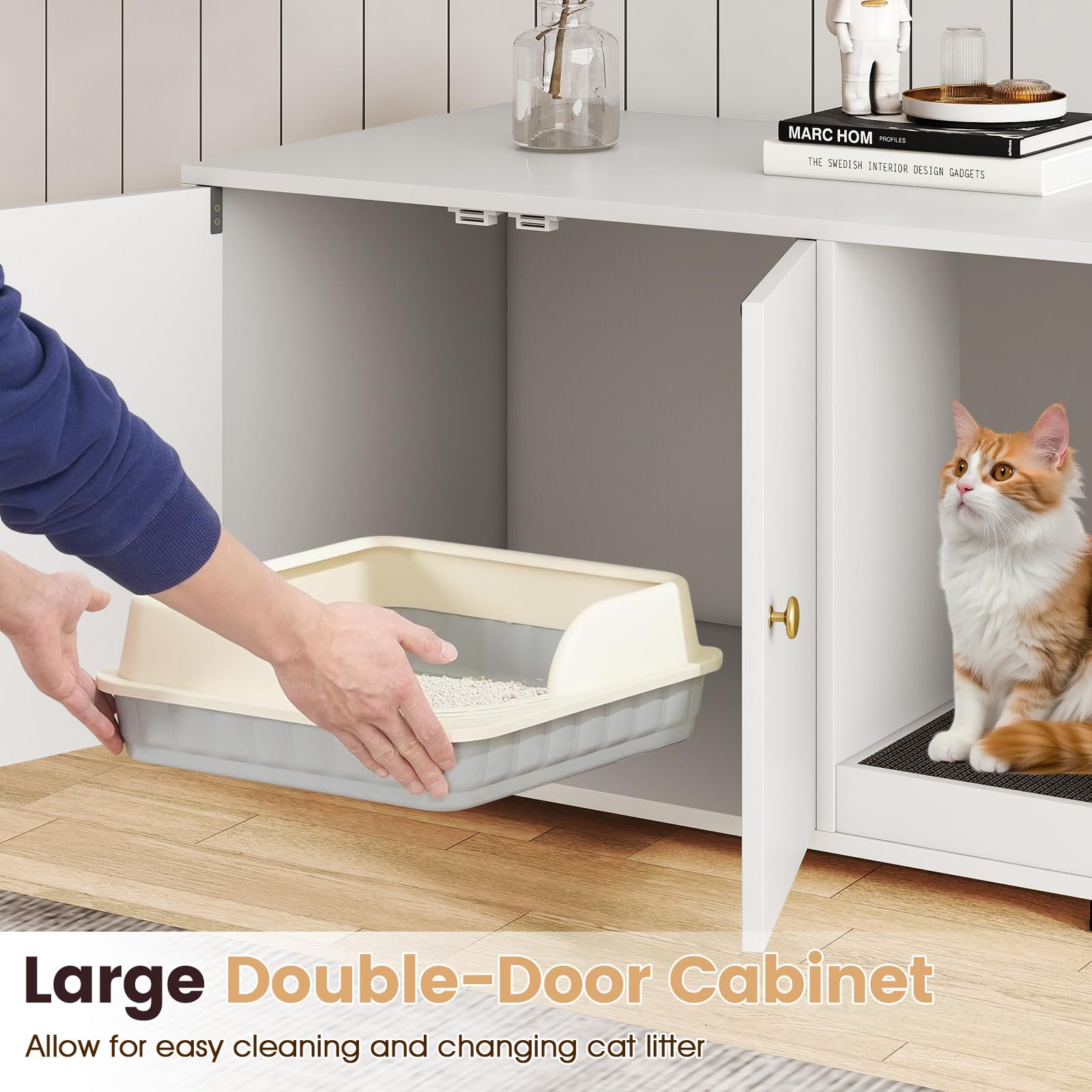 Double doors allow quick cleaning for busy cat owners