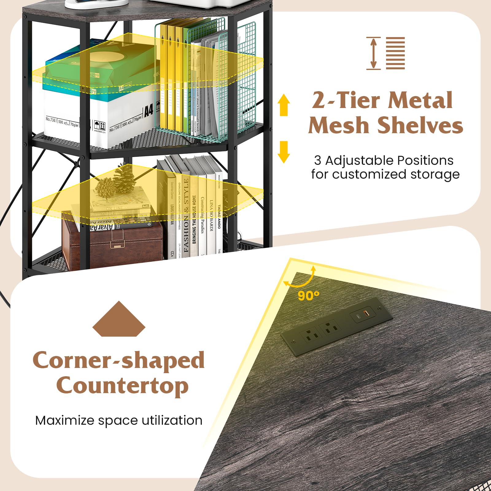 Transform your workspace into a powerhouse of efficiency and style with our versatile corner table! Outfitted with a convenient built-in power strip, including USB and Type-C ports, and powered by a robust frame - you can bask in organization heaven while charging your tech. With ample storage that's adjustable to your whims, this piece expertly fits your space and style. Tucked neatly into corners, it maximizes your area while ensuring everything stays exactly where it should, thanks to the innovative anti-tip design. Perfect for any room, our standout table will merge dynamics, durability, and design into every workday. Make it yours and redefine your corners!