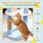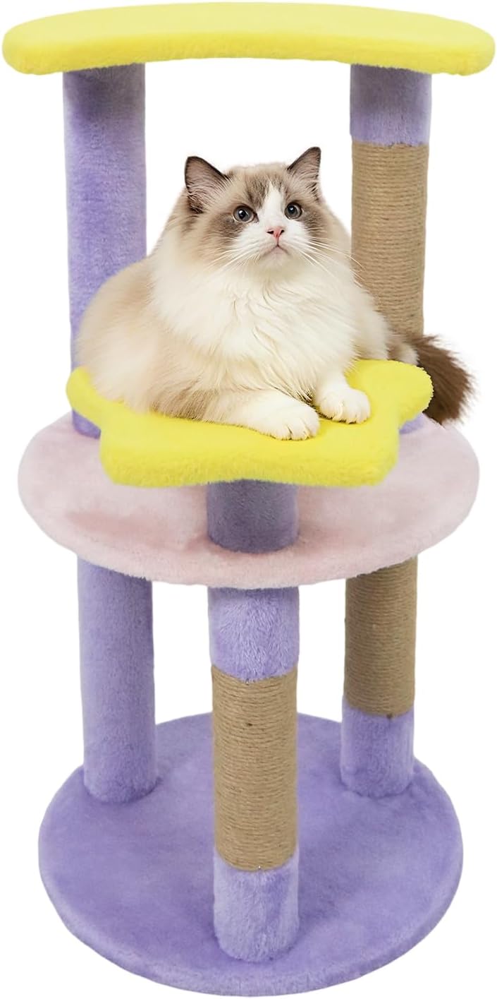 Our 29"/74 cm vibrant cat tree is designed with imaginative moon and star shapes, paired with a unique blend of bright colors, making it a delightful addition not just for your pet, but also as a decorative accent for your home. Multiple sturdy layers offer your cat plenty of options for climbing, lounging, and exploring - perfect for energetic kittens and adult cats alike. Crafted with reliable jute scratching posts, this cat tree helps protect your furniture while promoting healthy, happy nails. For added peace of mind, the anti-toppling device keeps the tree safely anchored, so your cat can play and jump to their heart's content. Easy to assemble and built for lasting enjoyment, this cat tree brings both beauty and function to any cat-loving household.