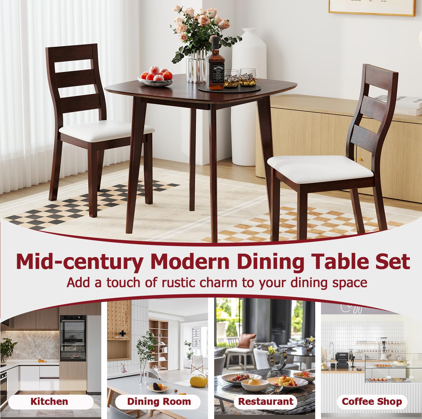 - MID-CENTURY DINING TABLE SET: This dining room furniture set includes 1 dining table & 2 chairs. It will be a perfect choice for you to have meals, afternoon tea, chat with your family or friend or work alone.