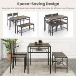 - 【Space-Saving Design】This 4 pcs dining table set features two armless chairs and a bench that can be tucked under the table, without taking up too much space. Ideal for apartments or smaller rooms where space is a premium, yet versatile enough to accommodate small get-togethers for chatting and eating together.