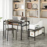 You won't be disappointed with this 4-piece dining table set! Our dining table set includes a spacious table, 2 chairs and 1 bench so you can enjoy great gathering moments with your family. The chairs and bench can be placed under the table to save space and the bench offers extra storage space underneath. It is worth mentioning that this dining table set is assembled from high quality MDF material and a steel frame for long lasting use.
