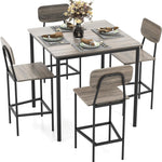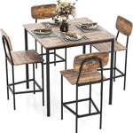 Our 5-piece dining table set features a counter-height table and 4 bar chairs, which can accommodate up to 4 persons to enjoy dining or refreshments. With the combination of an industrial look and contemporary style, the kitchen dining table set can be a good addition to your home decor. Besides, the tabletop is made of premium MDF board with beautiful wood grain finishes that is waterproof, smooth, and anti-scratch, allowing for long-term use. And the metal frame is constructed of heavy-duty powder-coated steel pipes, which are resistant to rust, peel, or chip, ensuring a strong and durable foundation. There also features a reinforced frame alongside the base that helps add extra stability while providing a place to rest your feet. Moreover, the ergonomic seat fits your body curves offering a comfortable sitting experience. When not in use, you can store 4 stools under the table for saving your floor space while making your room tidier.