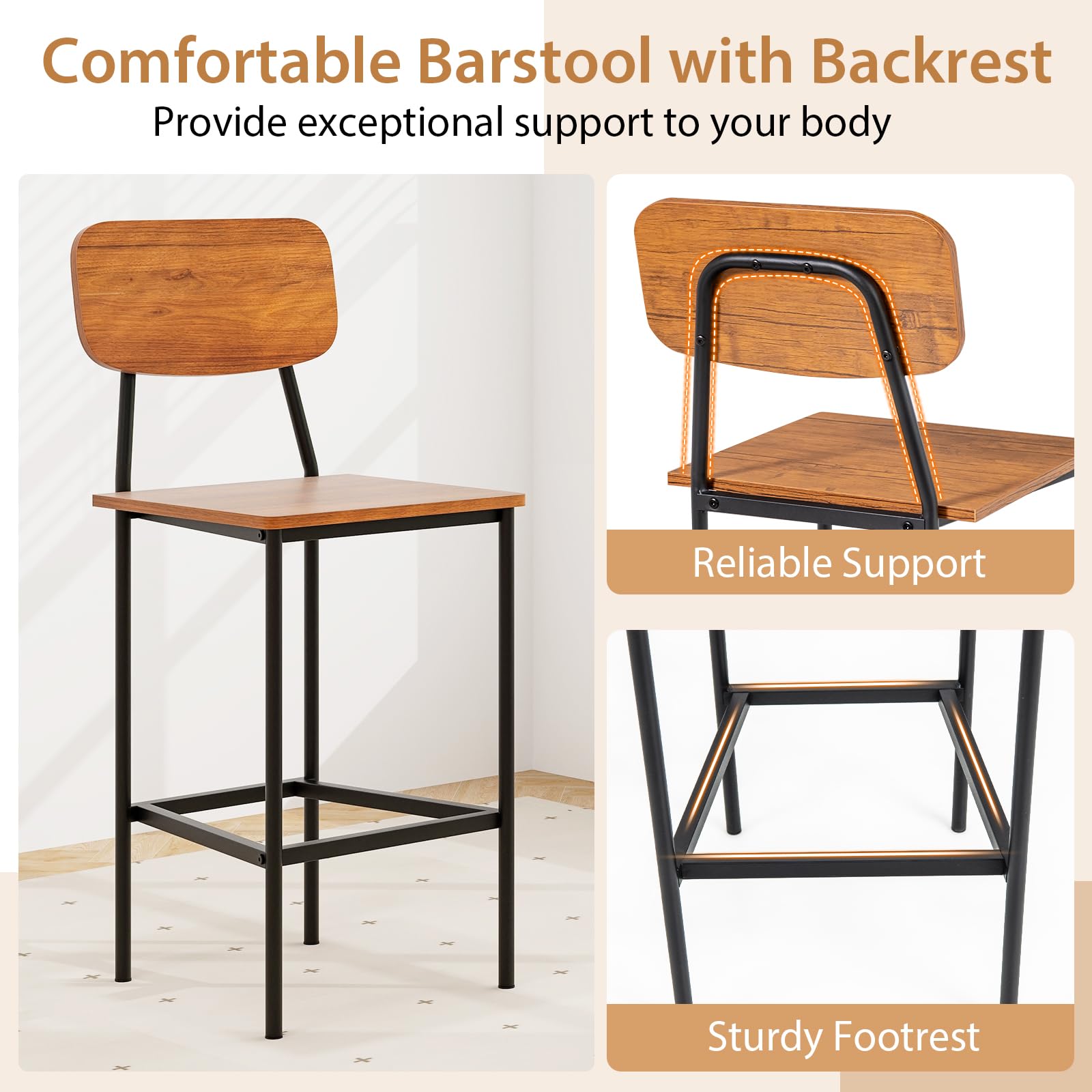- 【5 PCS Counter Height Table Set】The dining table set includes a counter-height dining table and four bar stools, providing a perfect setting for enjoyable dining or drinks with family and friends. The clean lines and elegant wood grain finish of the industrial table set allow it to seamlessly complement any room decor.