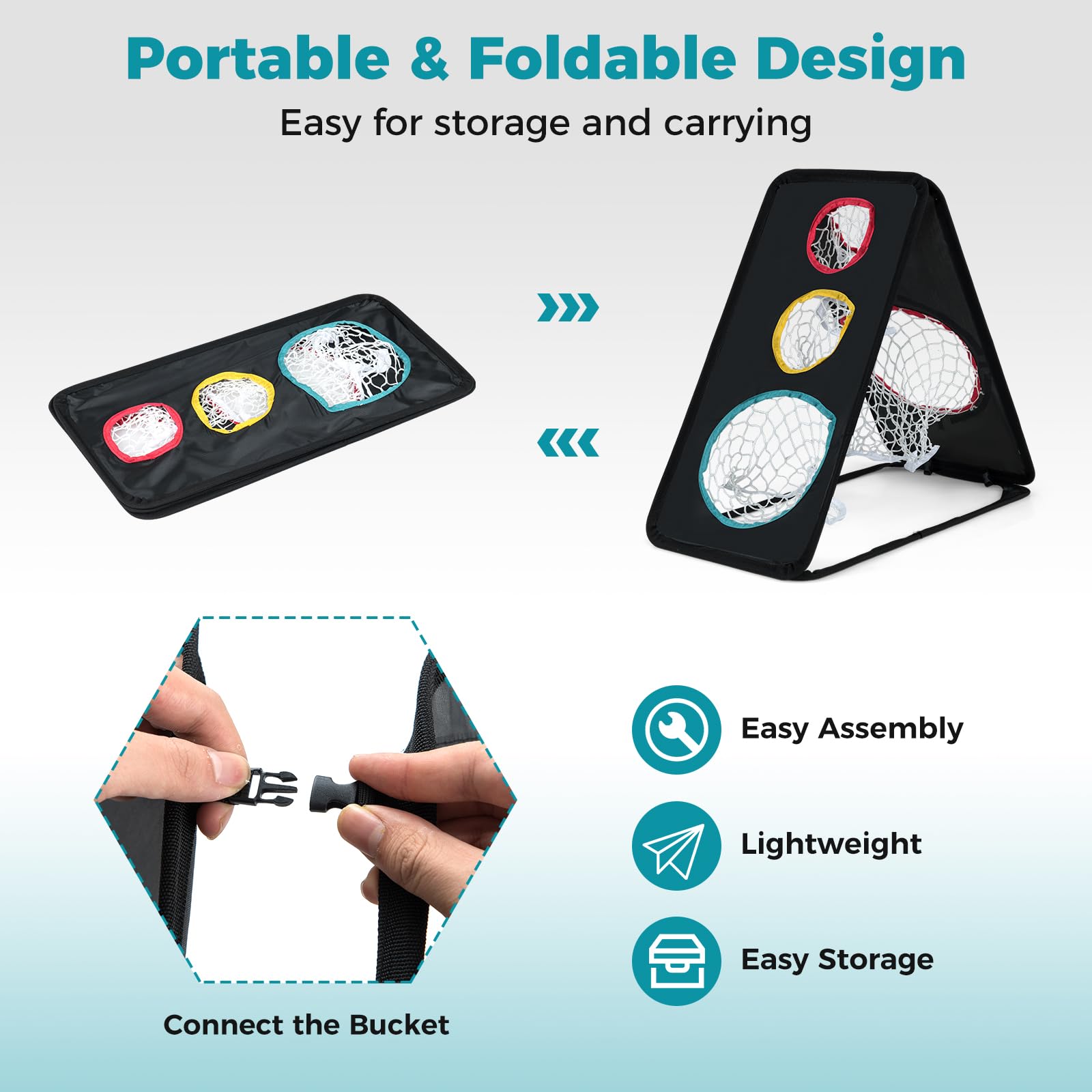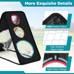 Elevate your short game with this professional double-sided golf chipping net! It features 5 precision target zones for chip, pitch, and lob shots. The reinforced triangular frame ensures exceptional stability, resisting deformation and tipping through thousands of shots. Besides, built with premium 420D fabric, tear-resistant polyester mesh, and reinforced stitching, this weather-resistant net withstands intense practice and outdoor elements. Perfect for year-round training anywhere, backyards, garages, living rooms, or parks. Quick-connect buckles enable tool-free assembly, while the lightweight construction makes storage and transport effortless.