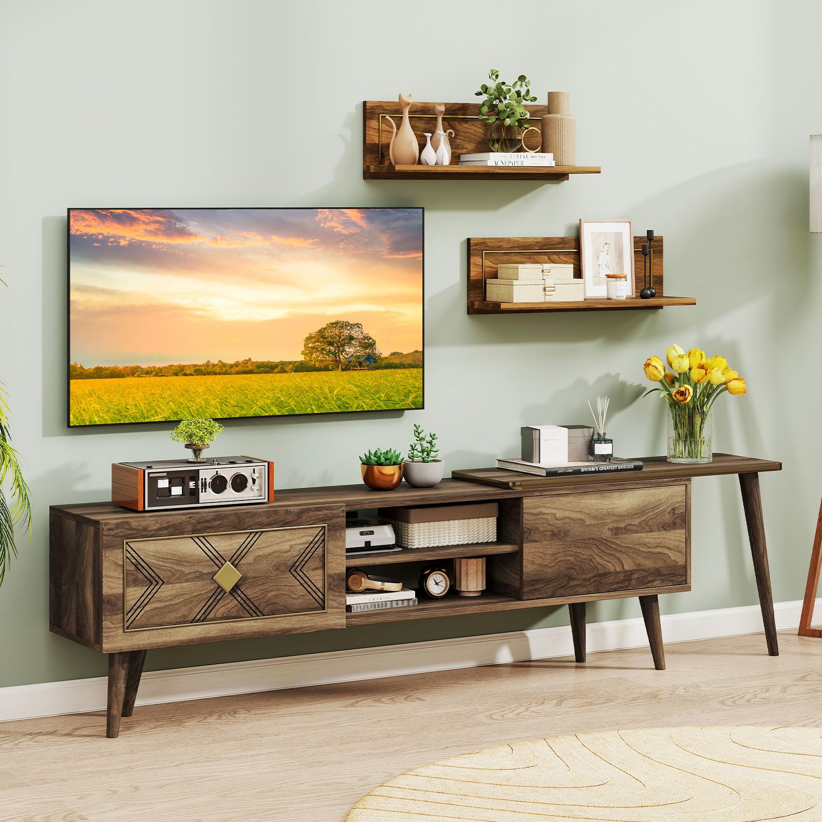 Tangkula Farmhouse TV Stand with 2 Wall Shelves