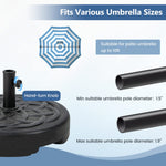 - Fits Various Umbrella Sizes: The round umbrella base includes a metal supporting pole and 2 plastic inserts, making it suitable for a 10 ft patio umbrella with 1.5"/1.9" umbrella poles. Moreover, a hand-turn knob will help you firmly fix the umbrella pole.