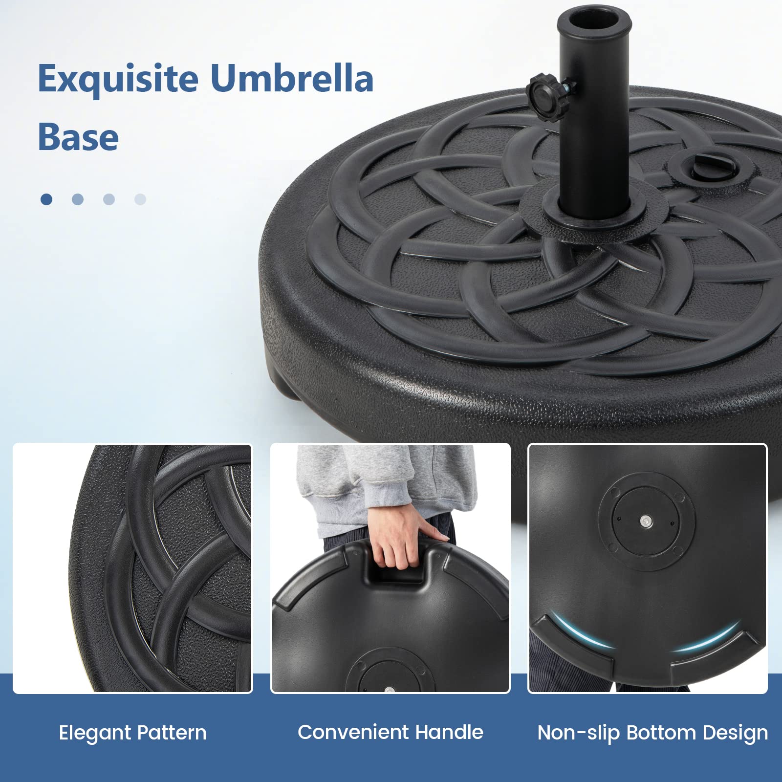 - Portable for Various Scenarios: The empty umbrella base only weighs 5.5 lbs and there is a hidden handle. Benefiting from its lightweight and portable design, the umbrella base can be effortlessly carried to the poolside, patio, garden, and yard.