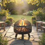 Our 24" wood burning fire pit offers a comfortable gathering space for 4-5 friends, perfect for your backyard gatherings, beach bonfires, and cozy nights. The enhanced safety design features a spark screen, fire poker, and an outer ring, ensuring added protection and peace of mind for families. With its heavy-duty metal construction and high-temperature paint finish, this outdoor fire pit is fireproof, rustproof, and ensures years of reliable performance. The 360° mesh cutouts on this firepit maximize airflow, promoting complete combustion, while the portable design and easy assembly allow you to effortlessly bring warmth wherever you need it.
