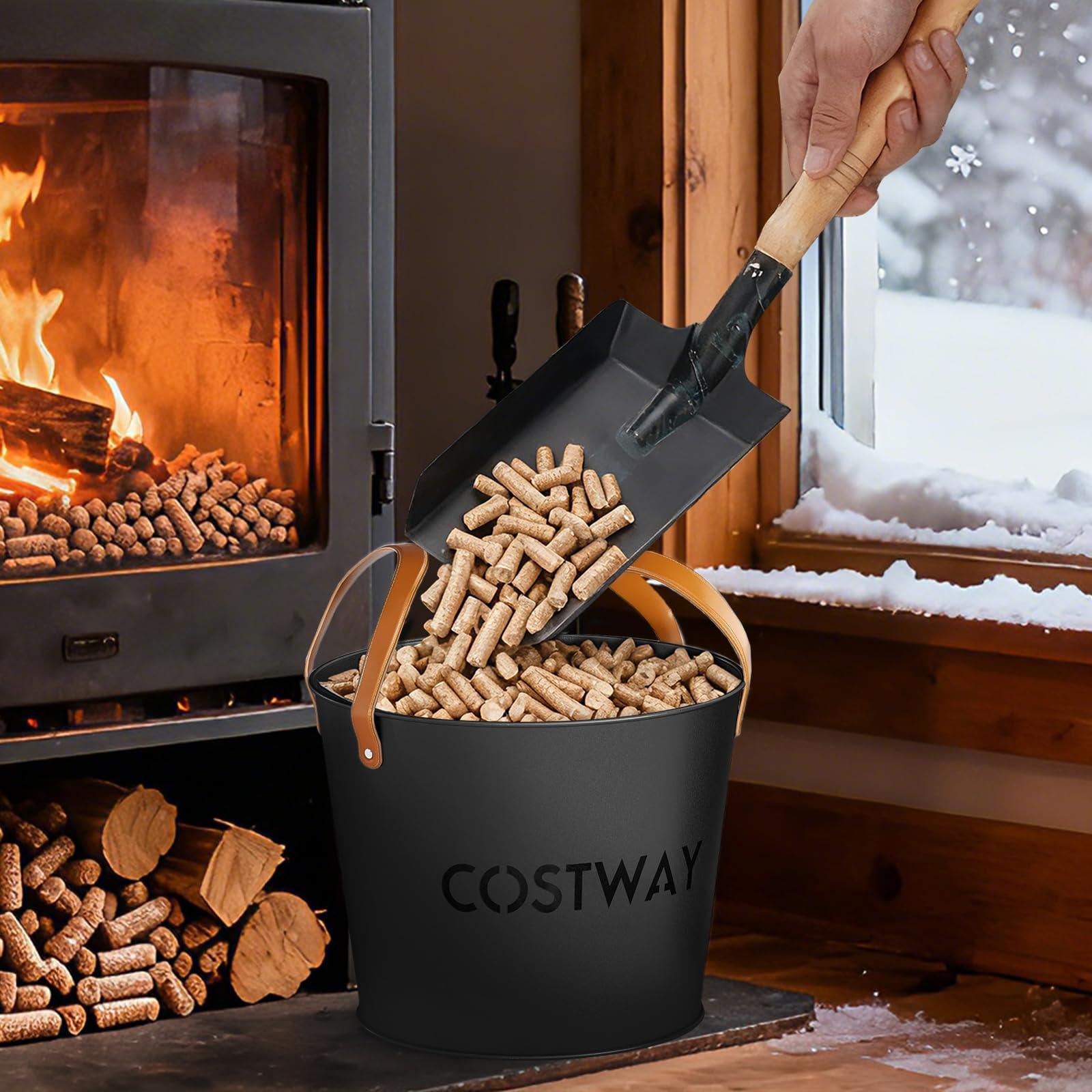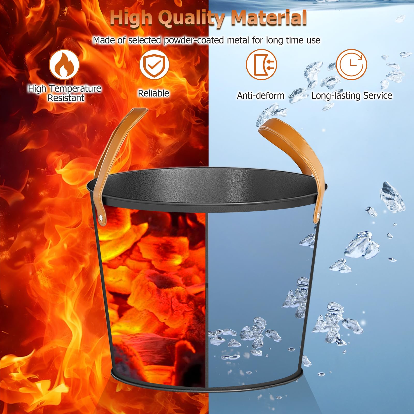Designed with soft genuine leather handles, these indoor log carriers offer comfortable grip and easy transport from outdoors to your fireplace. Plus, the practical firewood bucket set features 2 sturdy metal containers, a large 11.5 gallon and a smaller 5.8 gallon bucket, both finished with premium powder coating to withstand heavy loads and frequent use. Beyond holding wood and pellets, the multifunctional design of these pellet containers keeps coals, fire glasses and wood chunks neatly organized, enhancing your hearth-side efficiency. Moreover, with classic cutout designs that blend effortlessly into various home decorations, these versatile fireplace buckets combine style and lasting functionality to keep your fire essentials always within reach.