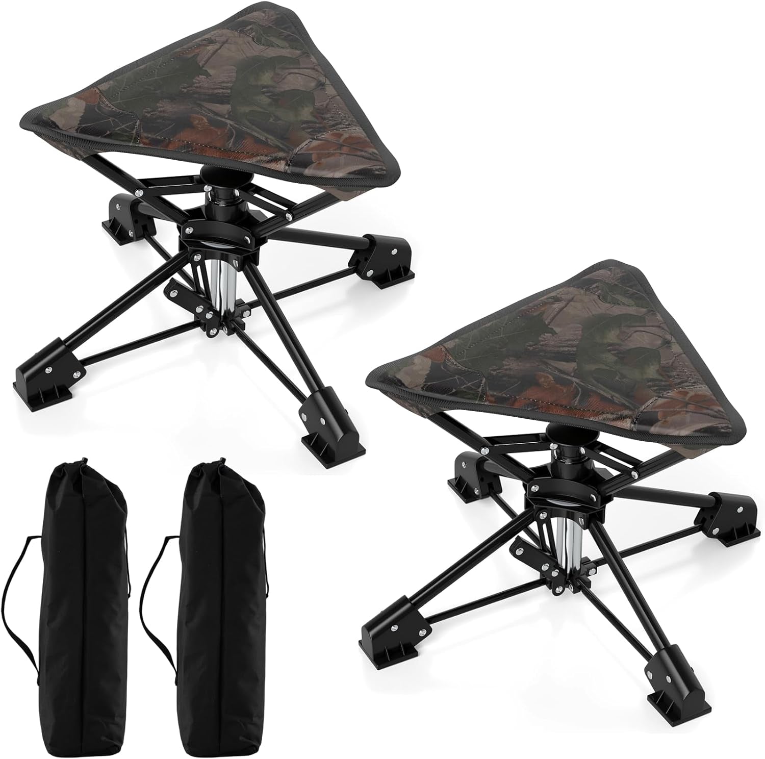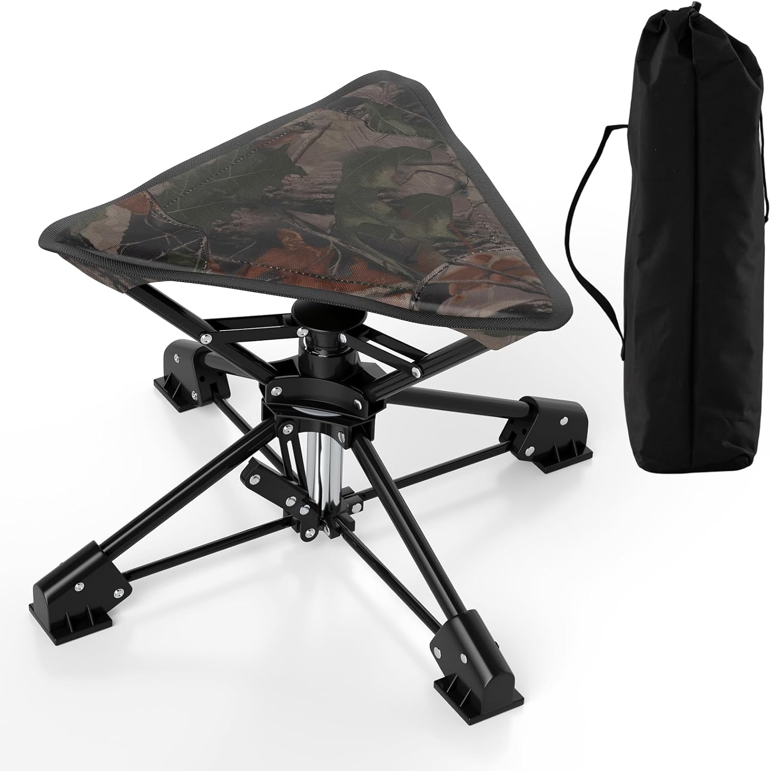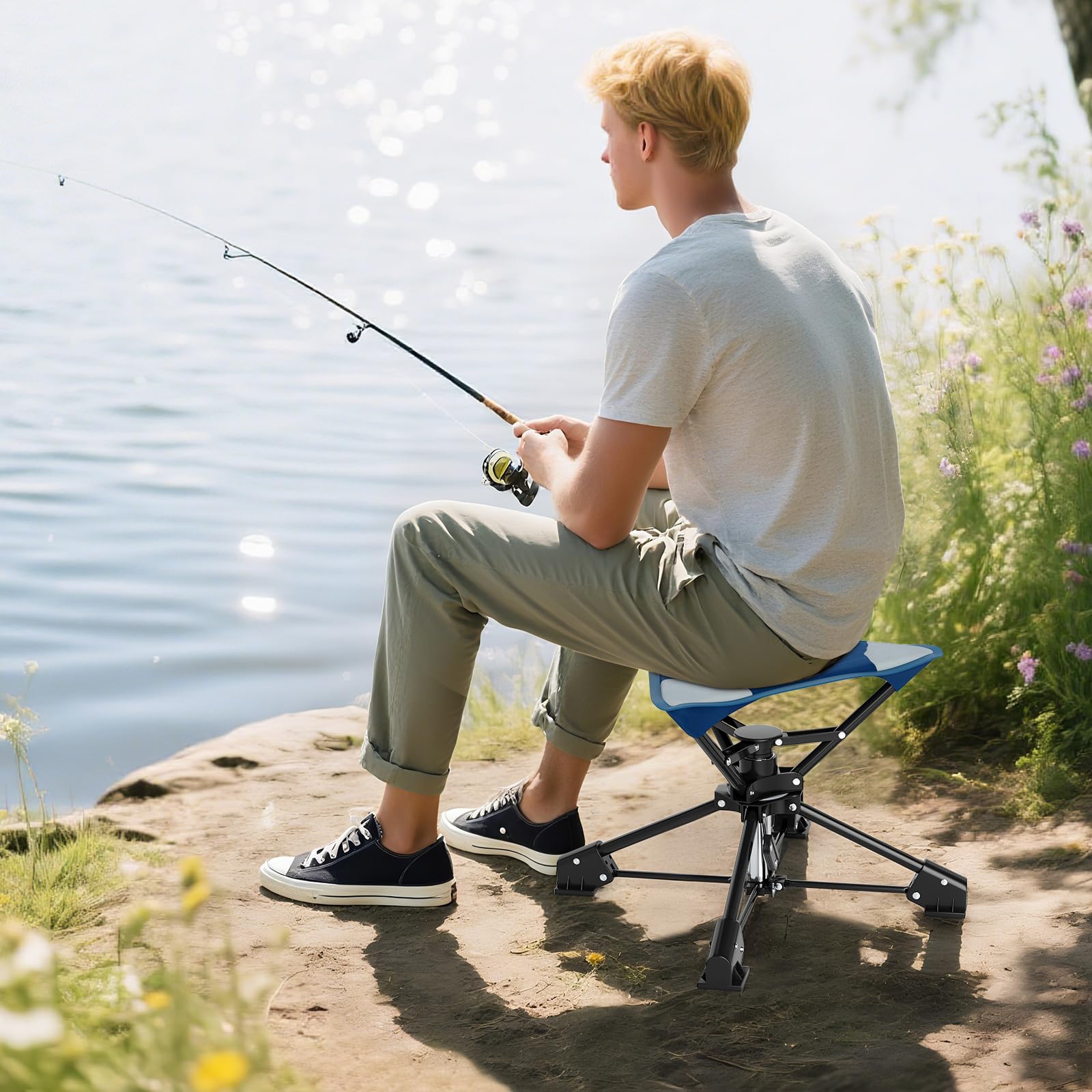 Are you looking for a multifunctional outdoor chair to enhance your next adventure? Our camping stool is your ideal choice. Compact and portable, it folds easily into 5.5" x 5.5" x 24" (L x W x H), with a convenient carrying bag and a lightweight 5.5 lbs design for effortless transport. The 360° swivel base allows for smooth, silent rotation, giving you a full range of motion. The seat, made from reliable 600D Oxford cloth, resists wear and tear, making it perfect for outdoor use. Constructed with sturdy metal pipes, this stool provides a stable base, with wide feet to prevent slipping or sinking into soft ground. It can support up to 330 lbs/150 kg, ensuring safety and stability. It offers comfortable seating for various activities like beach trips, picnics, camping, barbecues, fishing, hunting, and hiking.