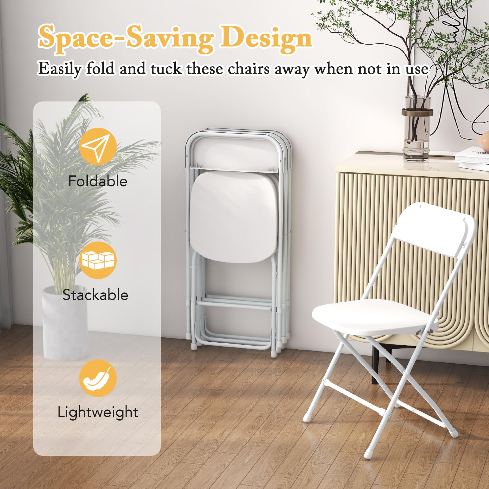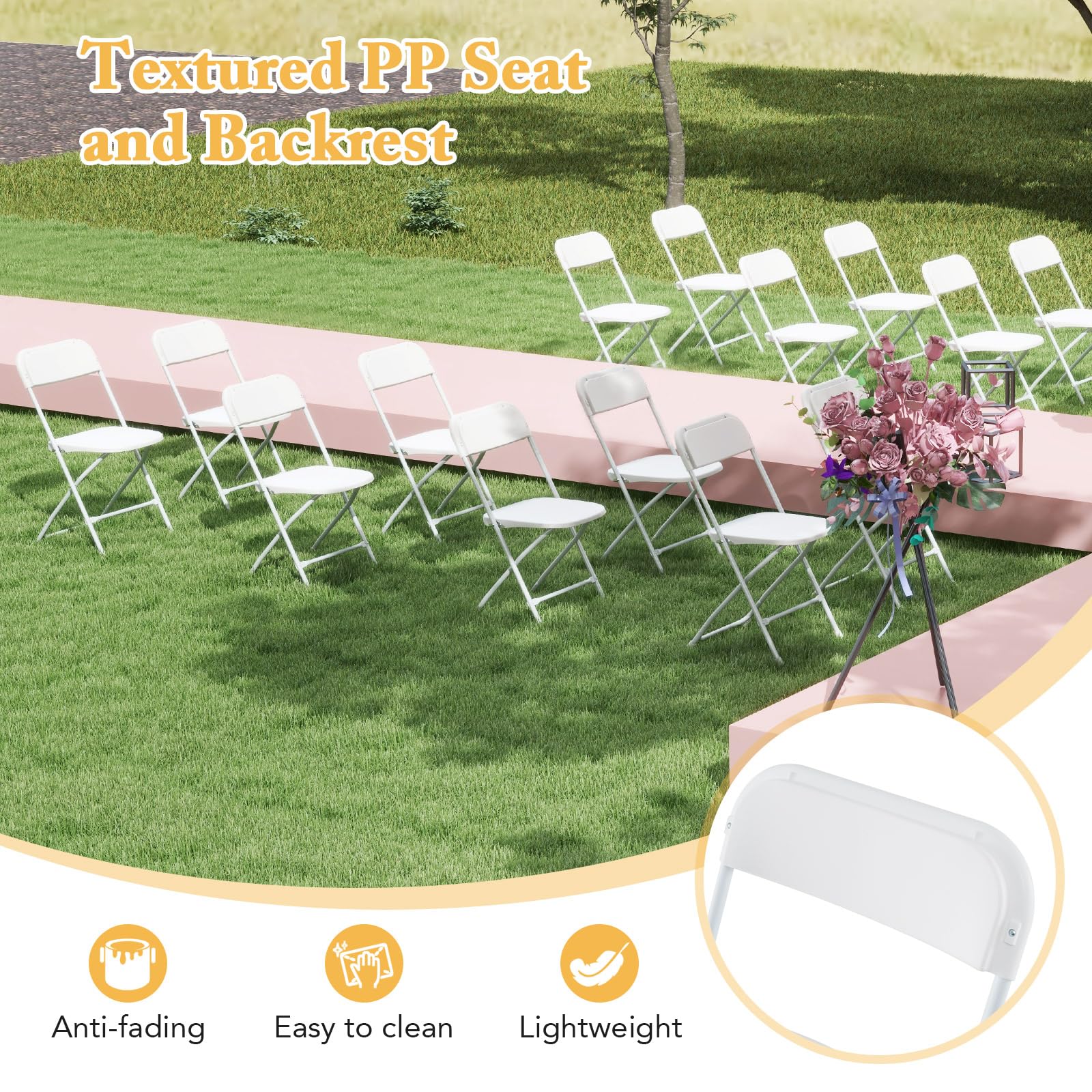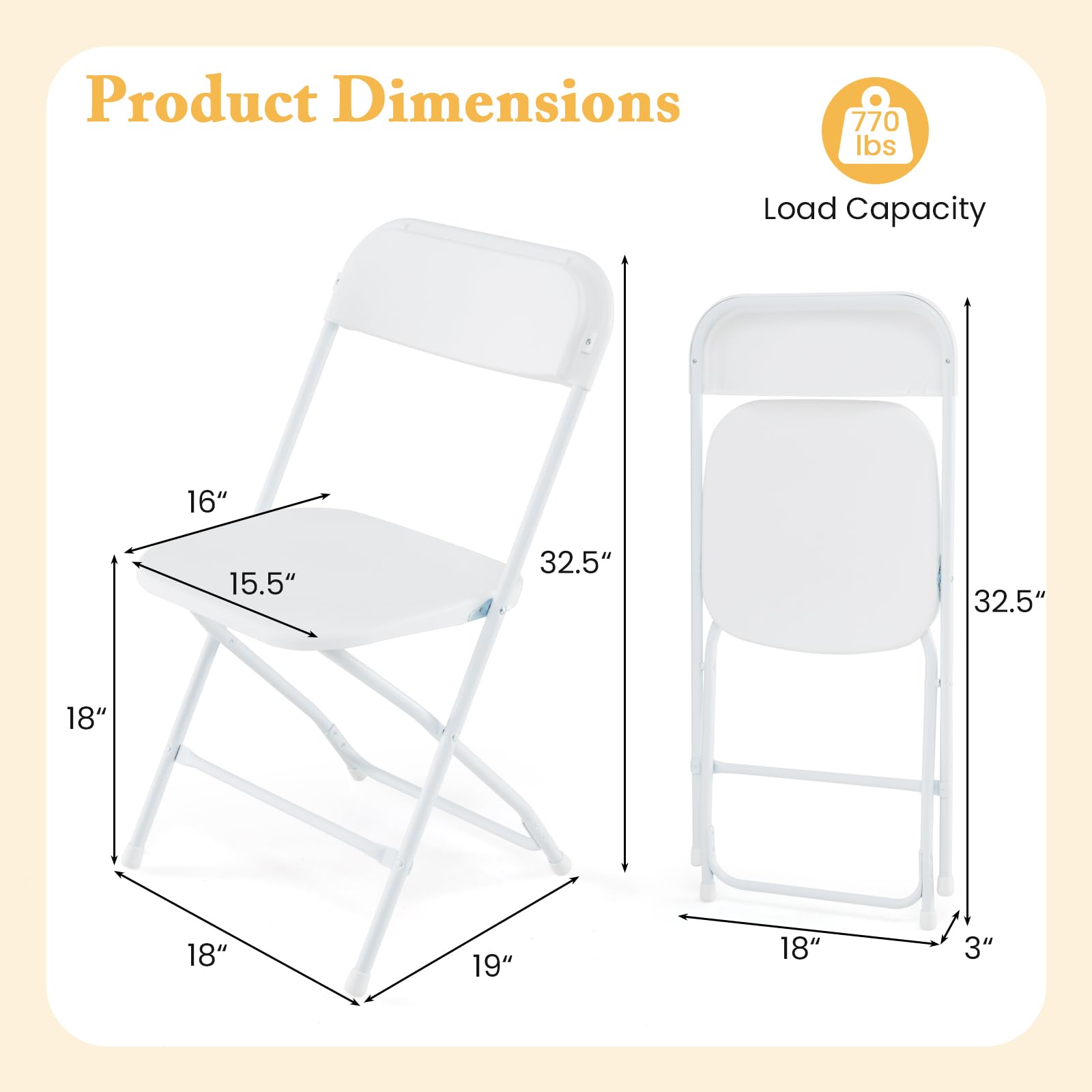 These chairs are supported by a heavy-duty metal frame to support strong weight capacity. Featuring PP seat and backrest, the folding chairs offer an extra layer of comfort during extended sitting sessions. When not in use, the chair set can be conveniently folded and stored away, taking up minimal space. Whether you’re hosting a backyard party, bustling wedding receptions, going camping, or simply need extra chairs for your home, these portable and lightweight chairs are the answer.