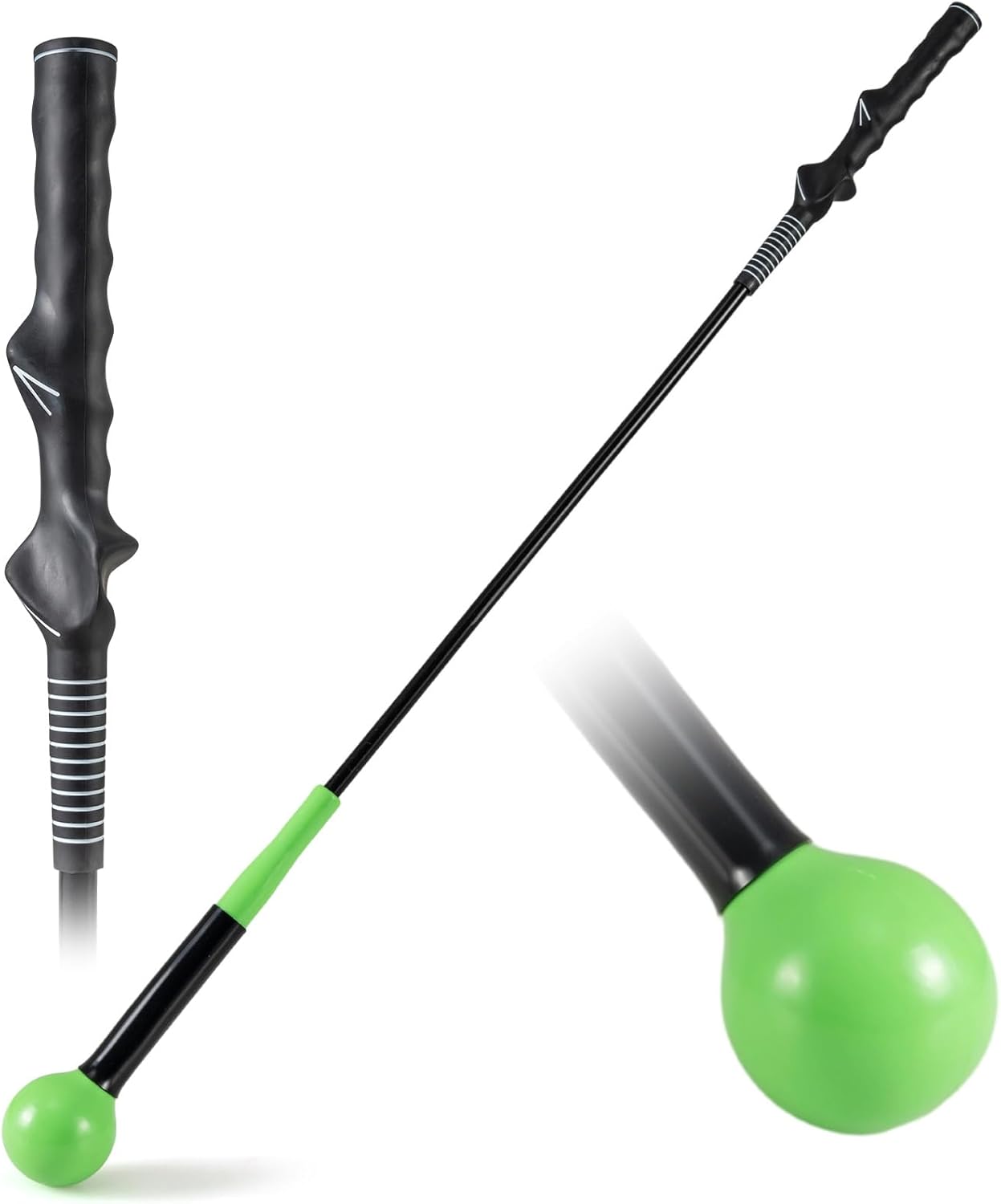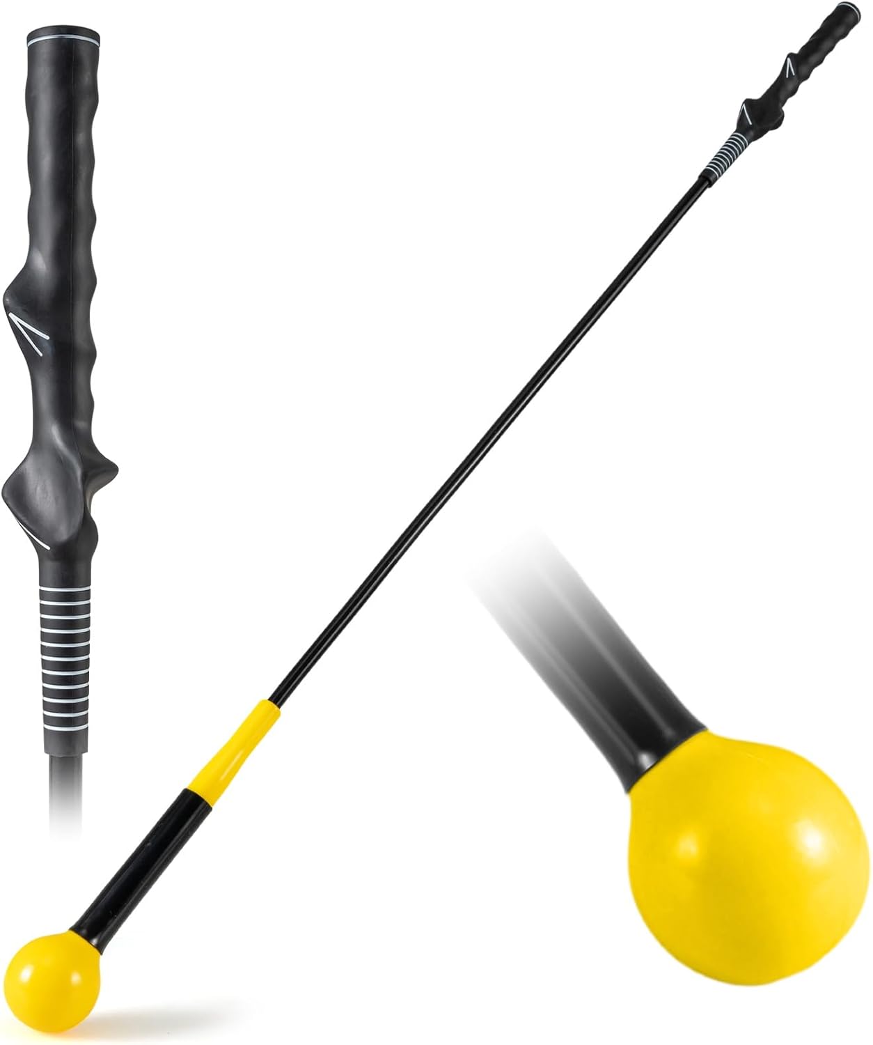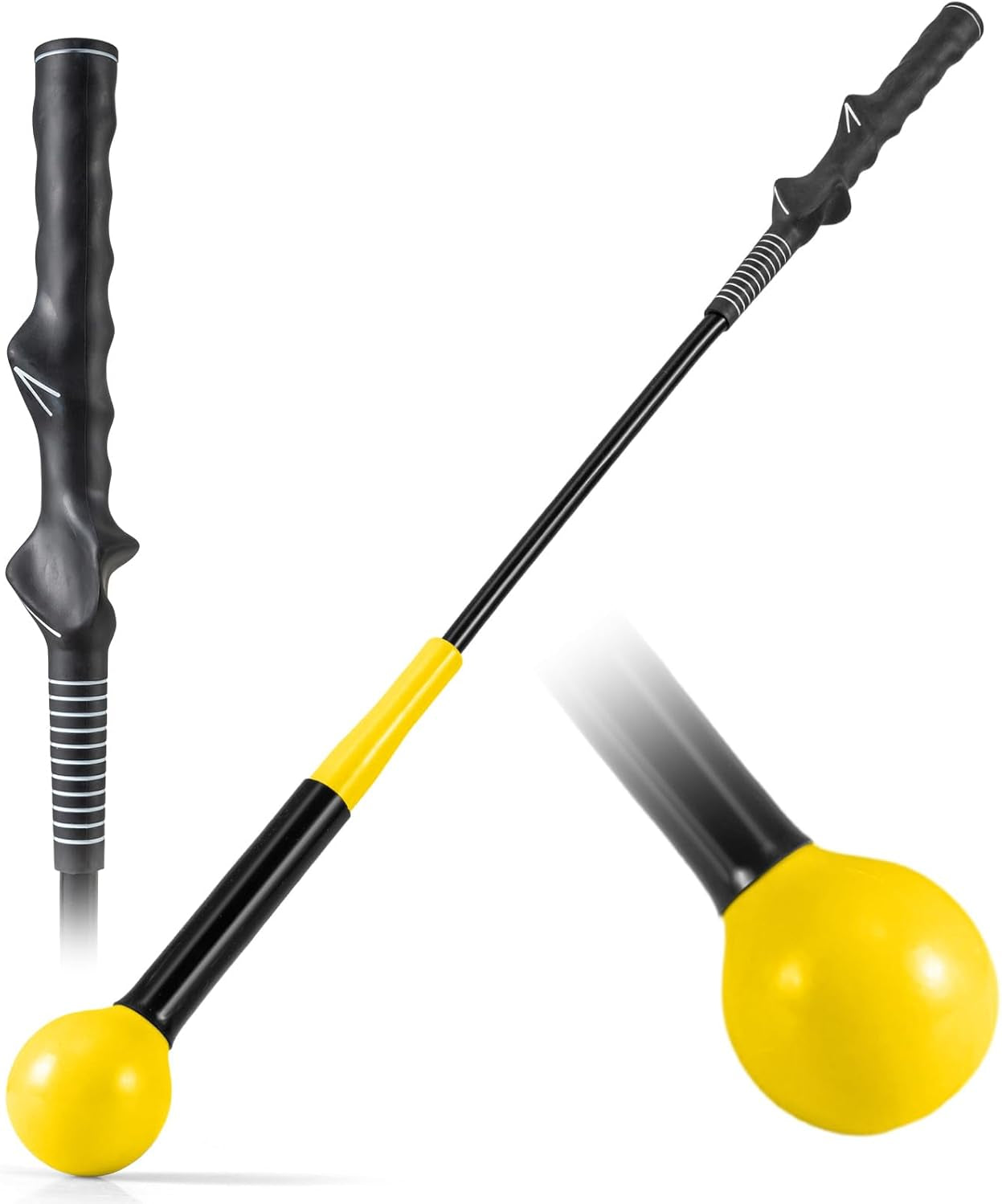 This golf swing training aid adapts to everyone from beginners to seasoned players. The flexible fiberglass shaft and weighted ball head work together to enhance muscle memory, and refine your tempo, promoting a more powerful and flexible swing. An ergonomic rubber handle ensures the correct grip for right-handed users and contributes to comfort and confidence during every session. Real-time feedback provides immediate tactile and visual cues, allowing you to see and feel needed adjustments in balance, tempo, or swing plane. Compact and easily portable, this golf swing training aid fits in any bag so practice and warm-ups can happen anywhere—at home, in the office, or on the course.