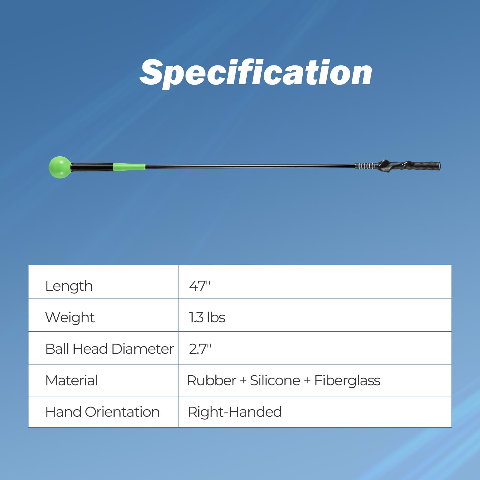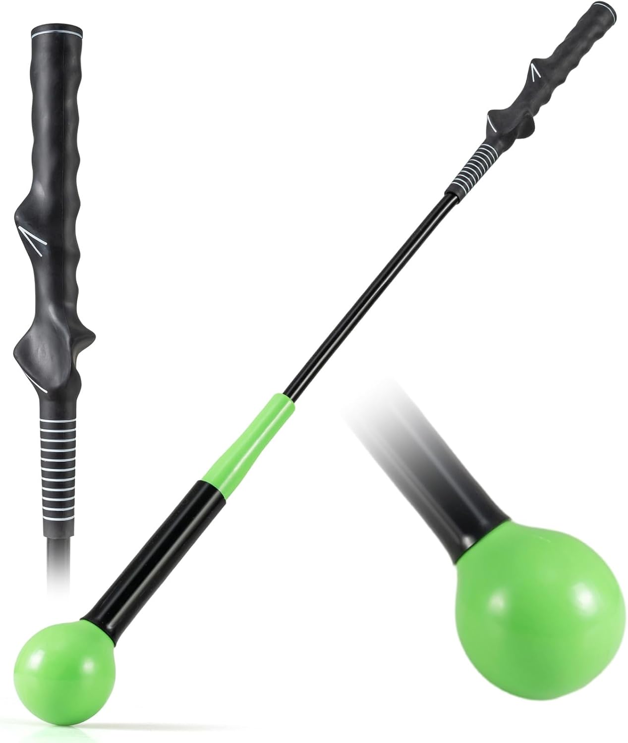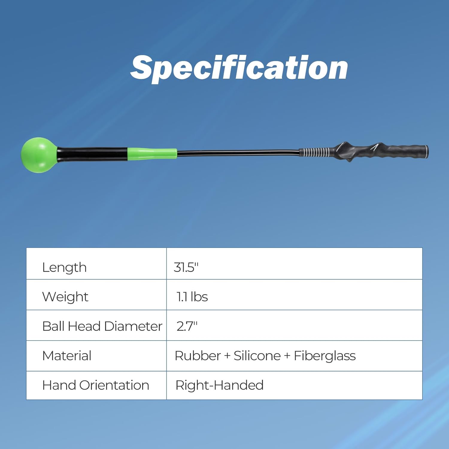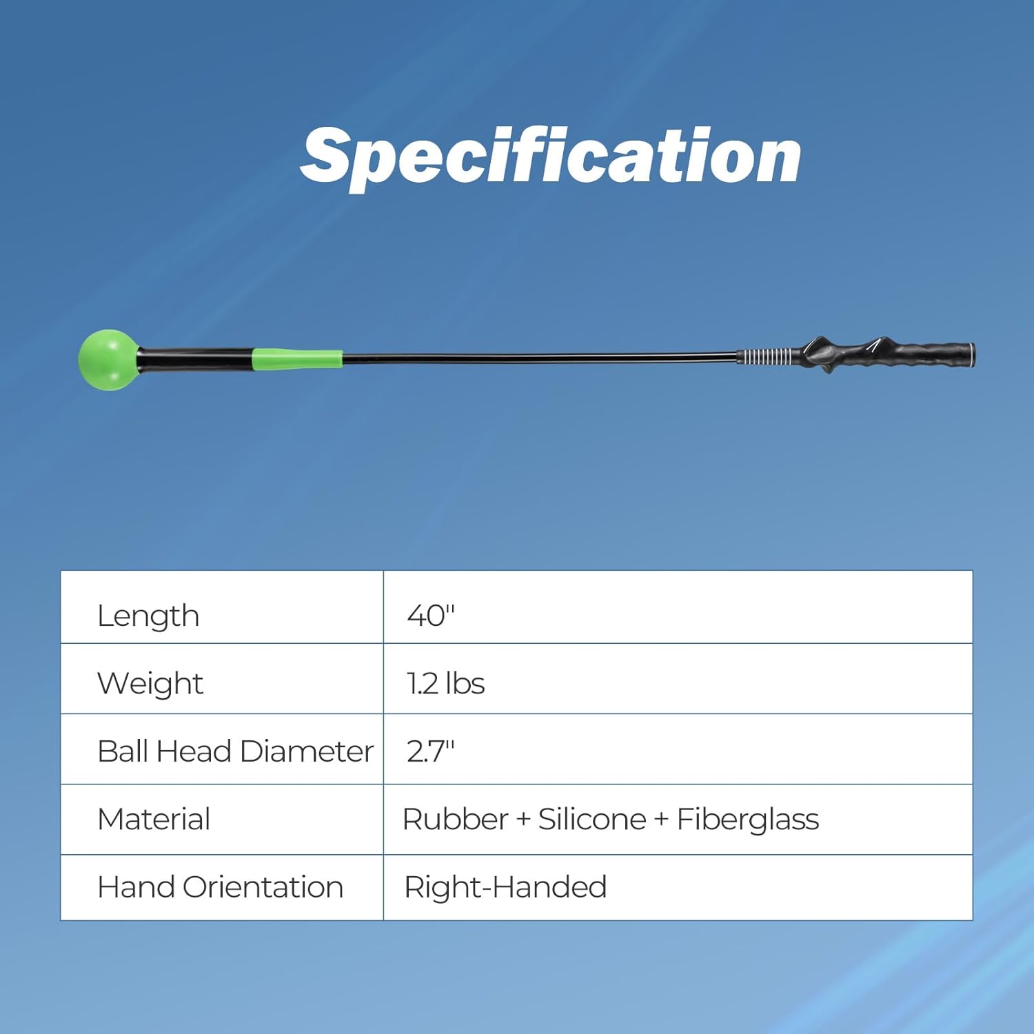 This golf swing training aid adapts to everyone from beginners to seasoned players. The flexible fiberglass shaft and weighted ball head work together to enhance muscle memory, and refine your tempo, promoting a more powerful and flexible swing. An ergonomic rubber handle ensures the correct grip for right-handed users and contributes to comfort and confidence during every session. Real-time feedback provides immediate tactile and visual cues, allowing you to see and feel needed adjustments in balance, tempo, or swing plane. Compact and easily portable, this golf swing training aid fits in any bag so practice and warm-ups can happen anywhere—at home, in the office, or on the course.