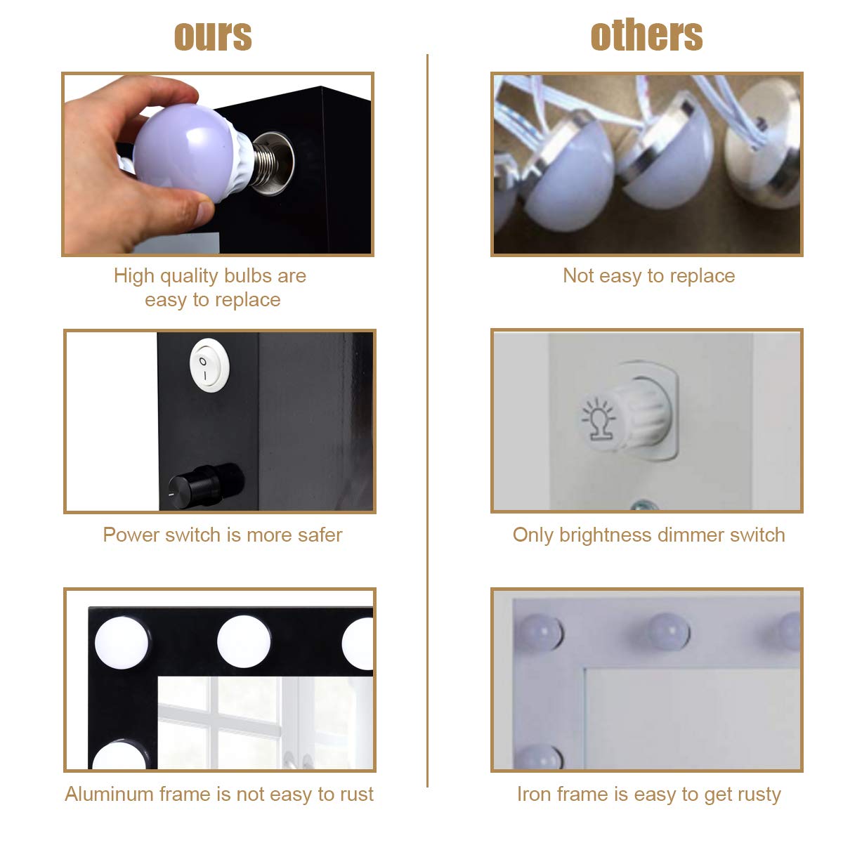 Have you ever dreamt of having a star-like makeup experience in your bedroom? We have the pick for you. This lighted vanity mirror will fascinate you by the aesthetic style and the design features. It comes with 10 high quality replaceable LED bulbs, which provide the ideal light for your daily makeup routine. The brightness of this lighted vanity mirror is adjustable as per your need. This gorgeous vanity mirror adds a charm to your room because of its high-definition mirror. With powerful functions and size, this mirror will fit any vanity table without any hassles. What more you want, it comes with power switch and dimmer switch, simple set up and use. Take it home, you got more than a makeup mirror but also a decor for your room.