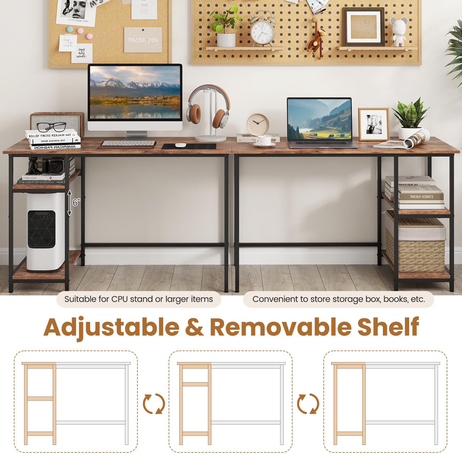 • Spacious Working Space: The desktop is designed for 2 monitors while providing ample space for your lamp, tea cup, and other supplies so that everything you need in the office or entertainment activities can be within reach. In addition, 2 open shelves on the side are convenient for you to store books, documents, and snacks.