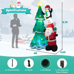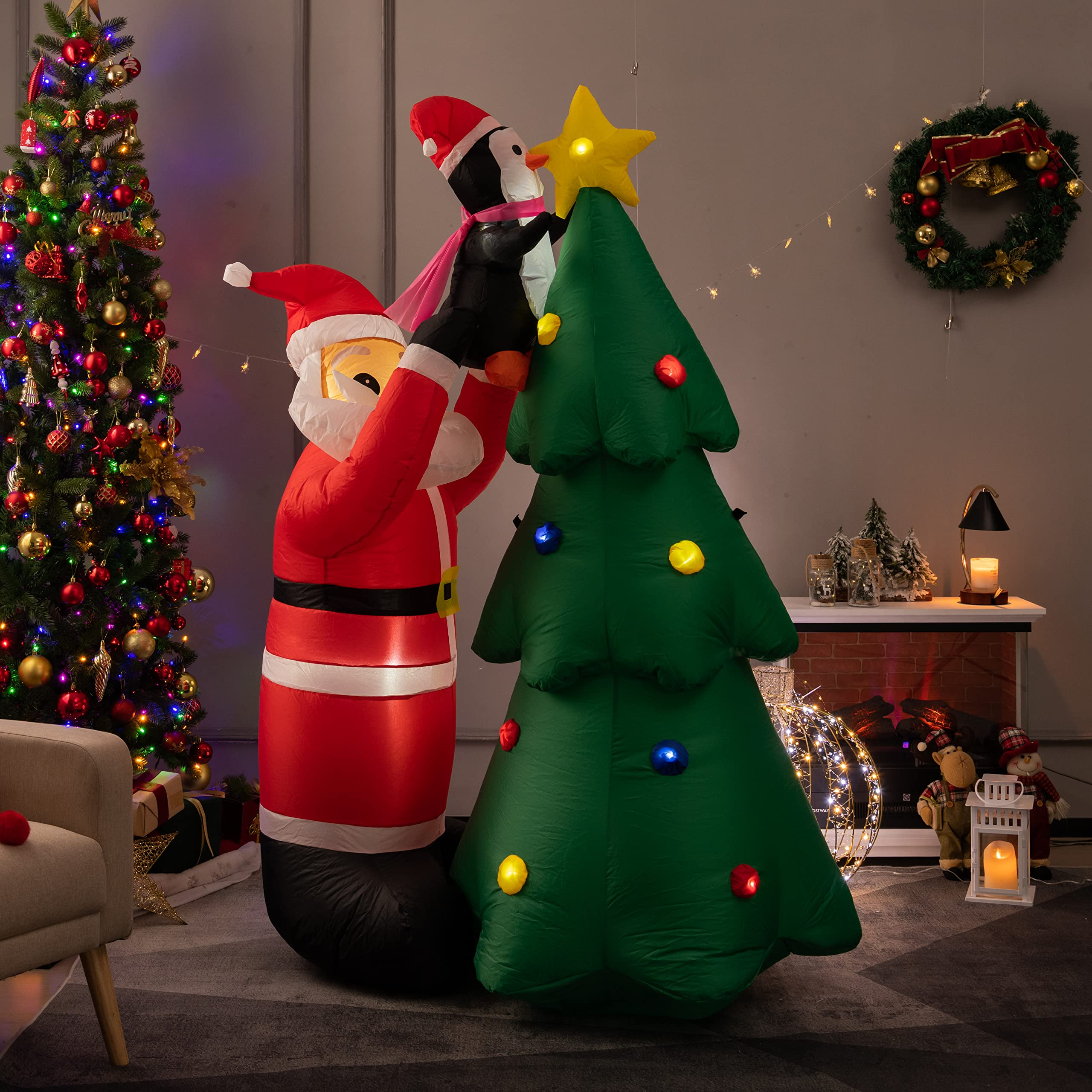 - Adorable Inflatable Decorations: This Christmas inflatable decoration includes an 8-feet tall Christmas tree. And next to the Christmas tree is the classic Santa Claus, a penguin with a Christmas hat and a cute snowman. It's perfect for decorating a room or patio during the Christmas season, which will bring a Christmas atmosphere to your family!