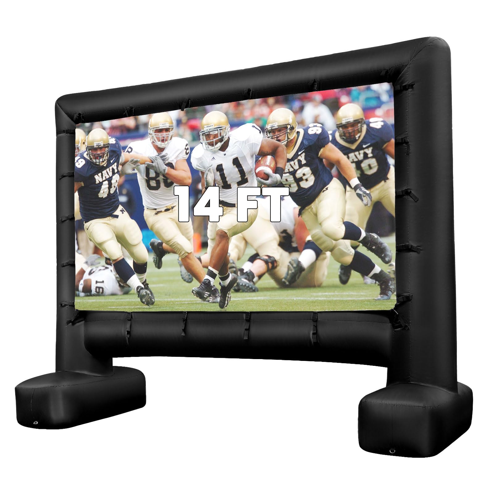 - Great Movie Viewing Experience: This inflatable projector screen frame has a diagonal length of 14 feet, super mega to create a true outdoor theater experience. The screen supports 1080P, 2D/3D visual, 3K, and 4K high-resolution projection. Moreover, the aspect ratio of 16:9 allows you and your family to enjoy natural, clear, and vivid colors.