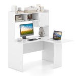 The L-shaped design optimizes corner areas or fits neatly against any wall, creating an organized hub for your work essentials. Above the desk, the open storage hutch serves as an excellent repository for books, plants, and decorative items. Made from robust and durable materials, this L-shaped computer desk ensures reliable support and maintains excellent stability. Its clean lines and modern aesthetic blend harmoniously with various interiors, from contemporary to traditional. Whether tackling a busy work day or diving into creative projects, this desk is a reliable choice.