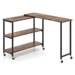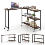 The 360°free rotating tabletop allows you to easily adjust the position of the table, promoting effortless access from any angle. Besides, 2-tier storage shelves offer additional space to organize your essentials. Built to last, this rotating side table features a sturdy metal frame that promises durability and stability. Adding to its practical design, the couch table is equipped with flexible casters for easy movement and sturdily stop. Our industrial sofa side table doubles as an efficient workstation, making it an ideal companion for leisure and work-related activities.