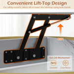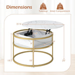 A versatile and sturdy lift top coffee table features a smooth gas lift mechanism for effortless workspace transformation. With ample storage, including a hidden compartment and side shelves, it keeps essentials organized. Supported by a robust metal structure holding up to 264 lbs, it ensures stability with adjustable foot pads. The center table’s generous bottom clearance offers versatile storage options or a cozy retreat for your furry friends. Measuring 31.5”L x 31.5”W x 19.5”H, it’s perfect for various settings like homes, apartments, or reception rooms, etc.