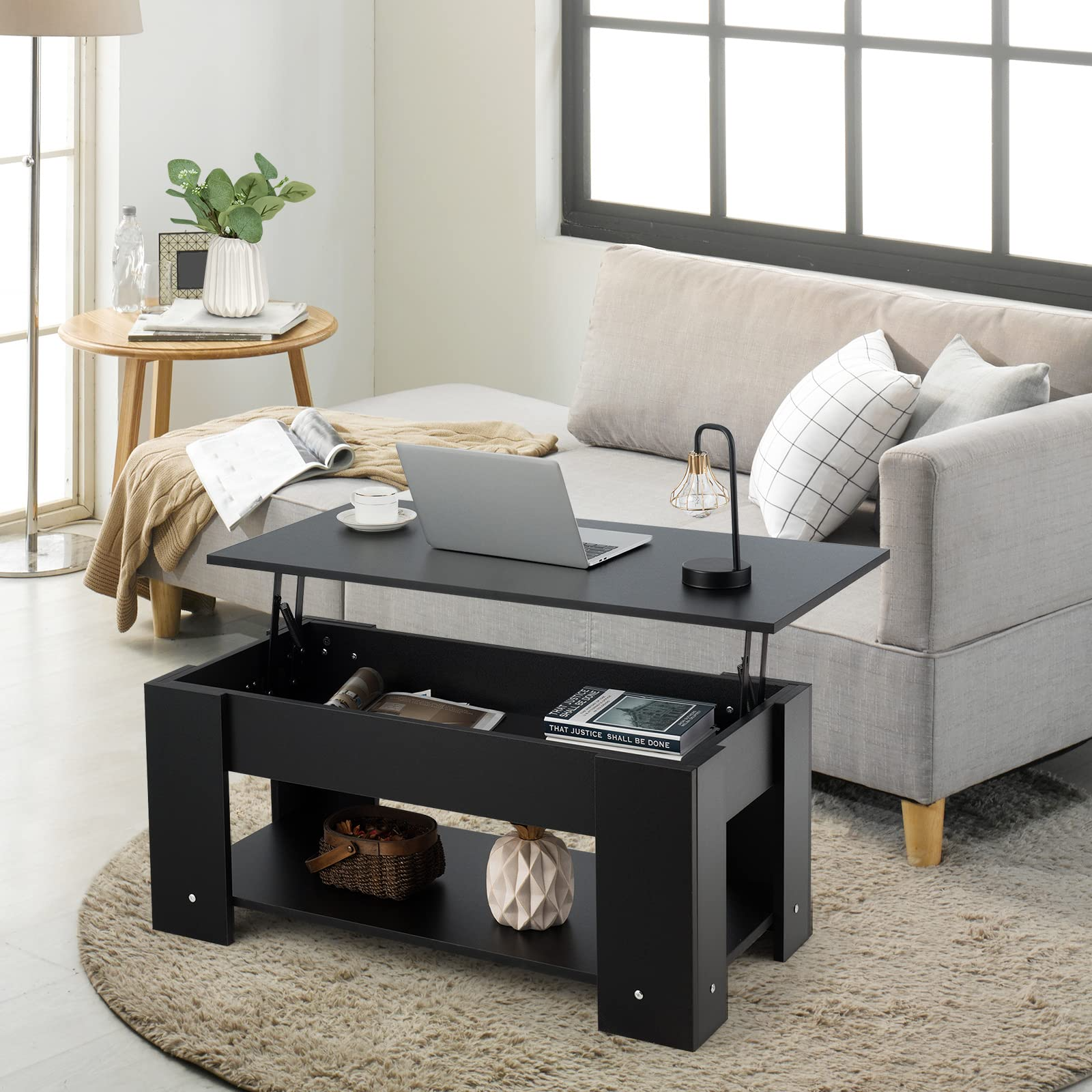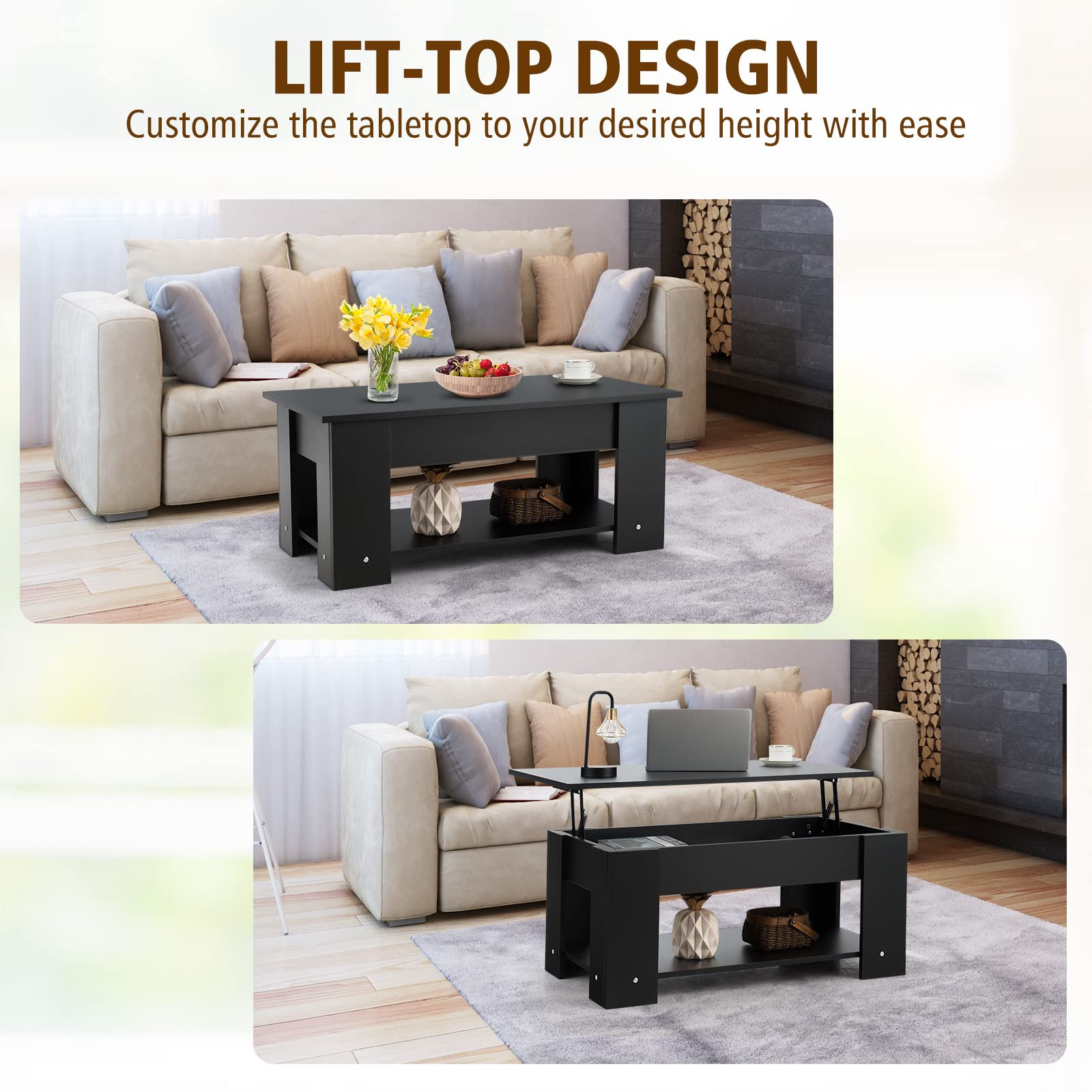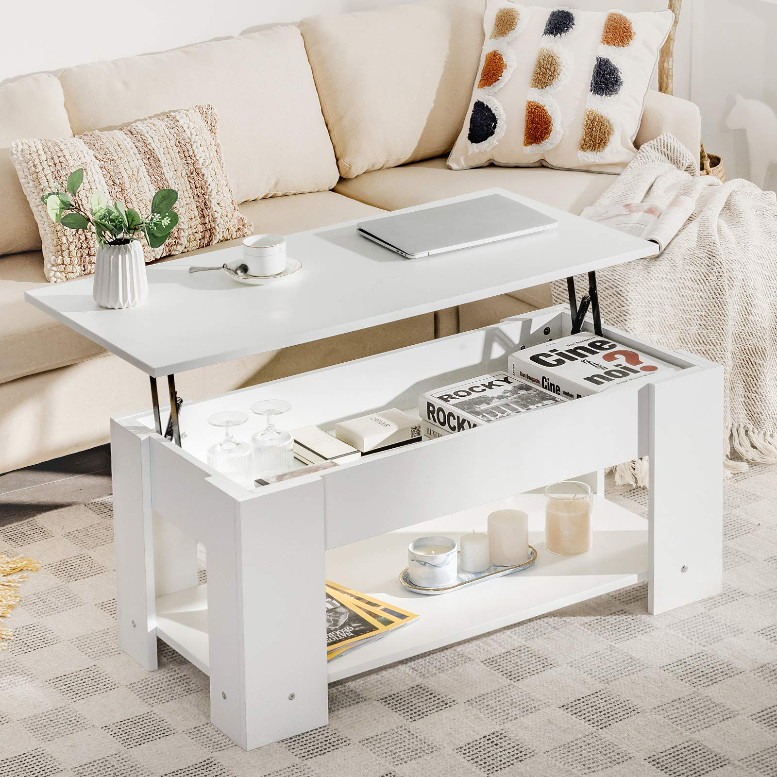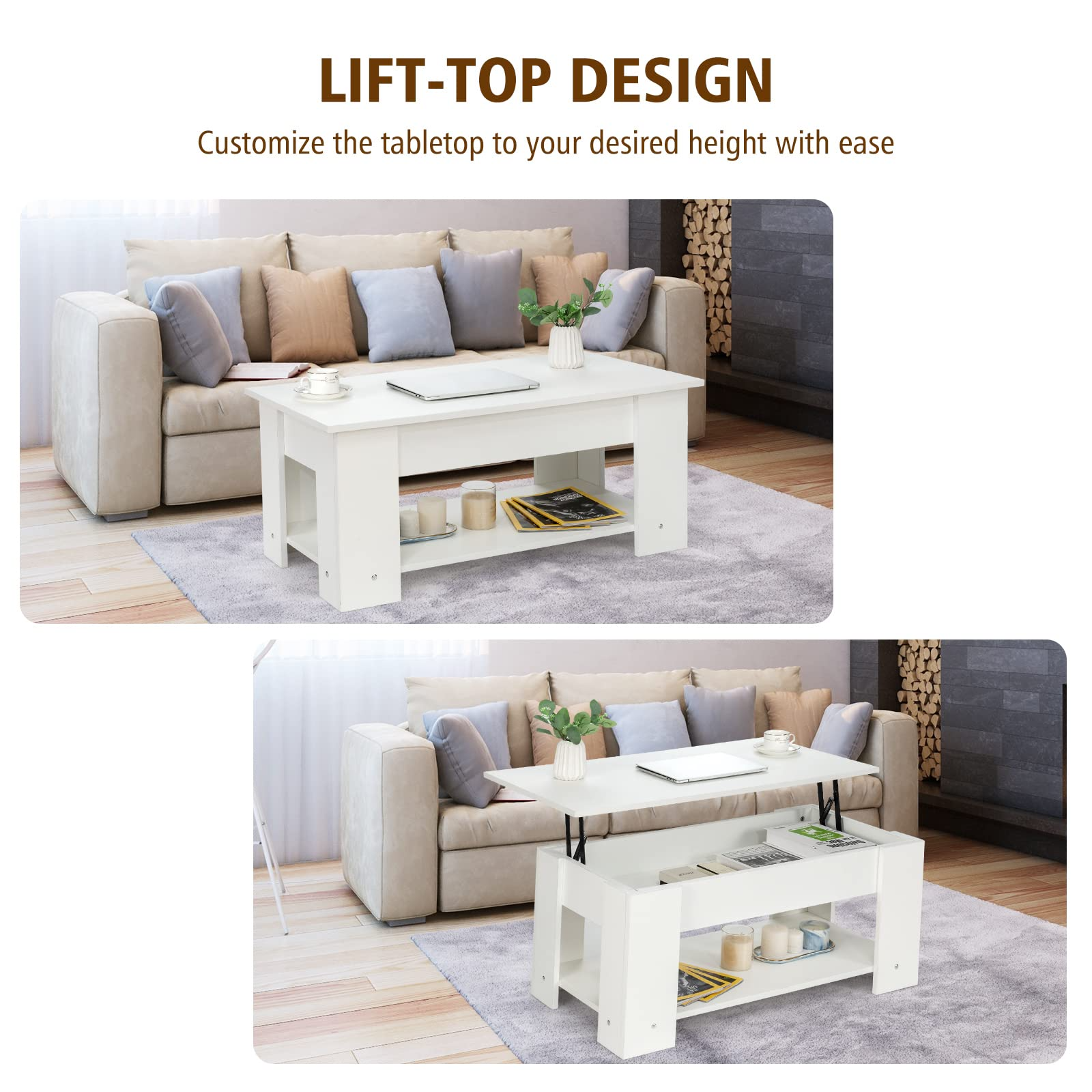 • Easy Lifting with Two Side Springs: Designed with the lifting table top, this coffee table will be more functional and practical. Two-side metal lifting mechanism provides powerful support that ensures a strong load capacity.