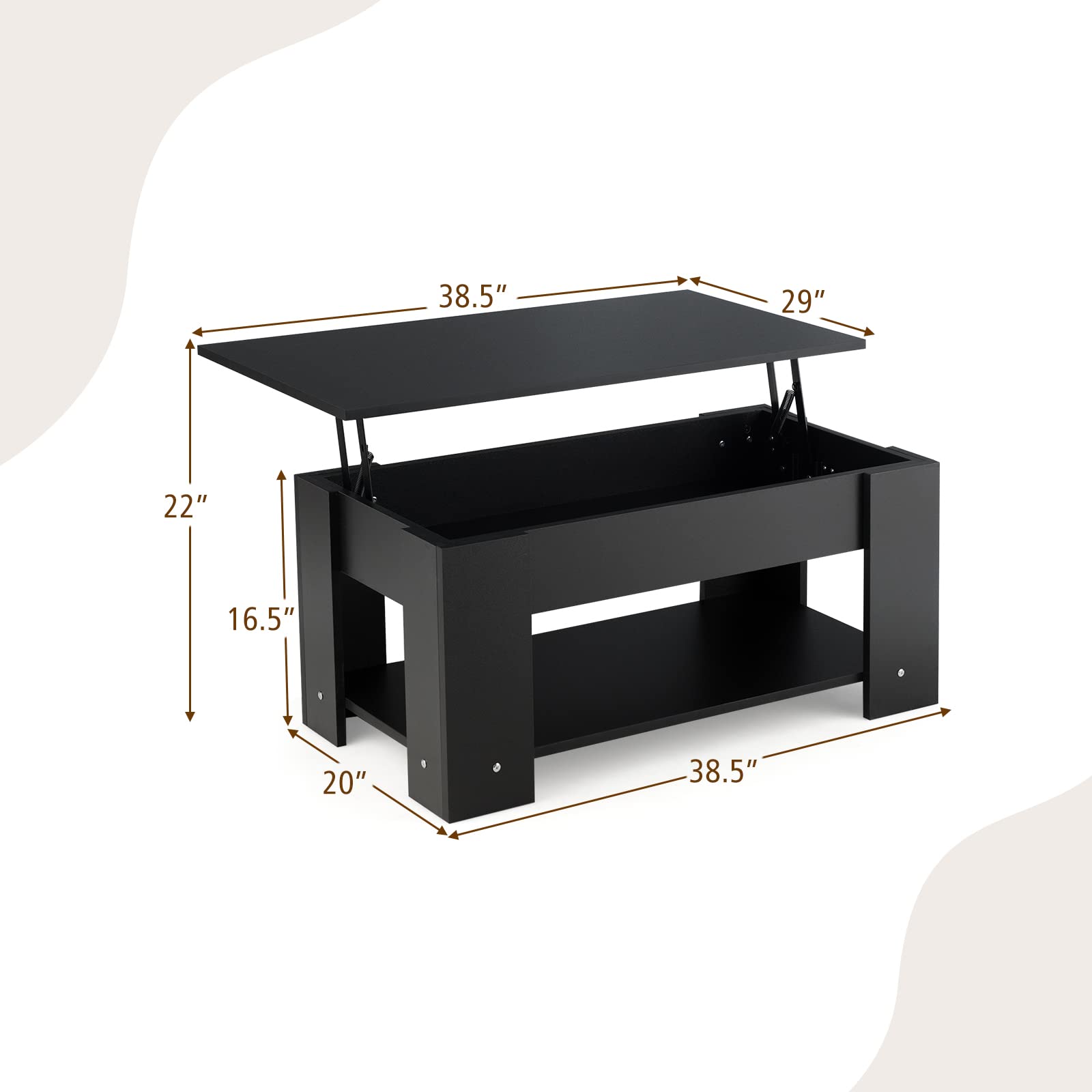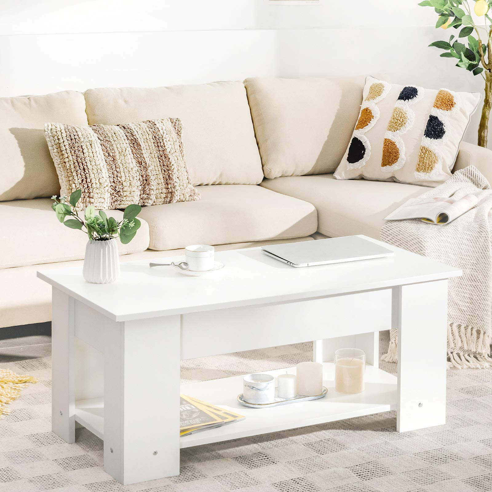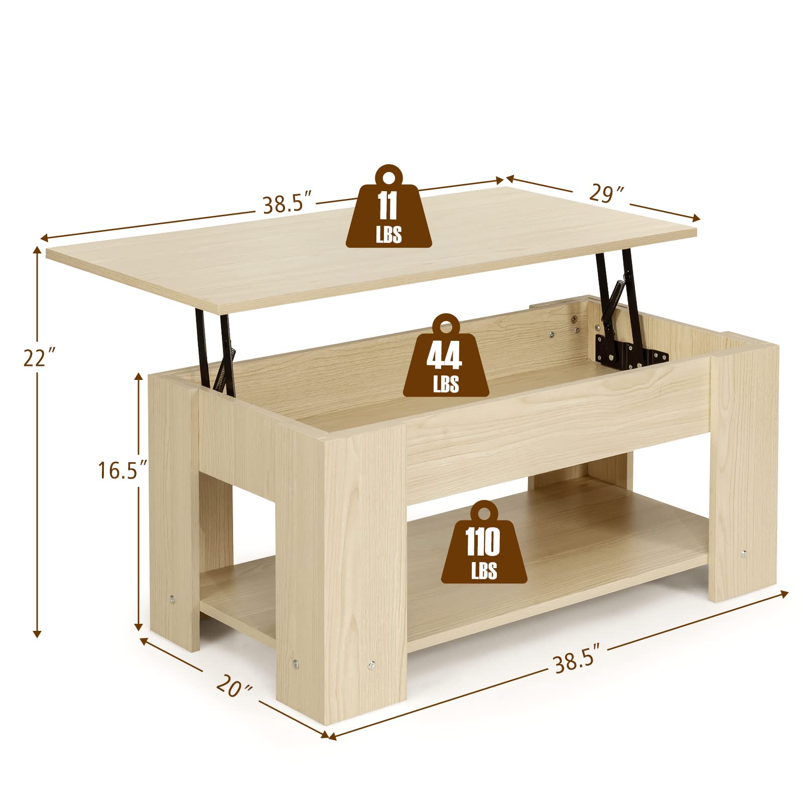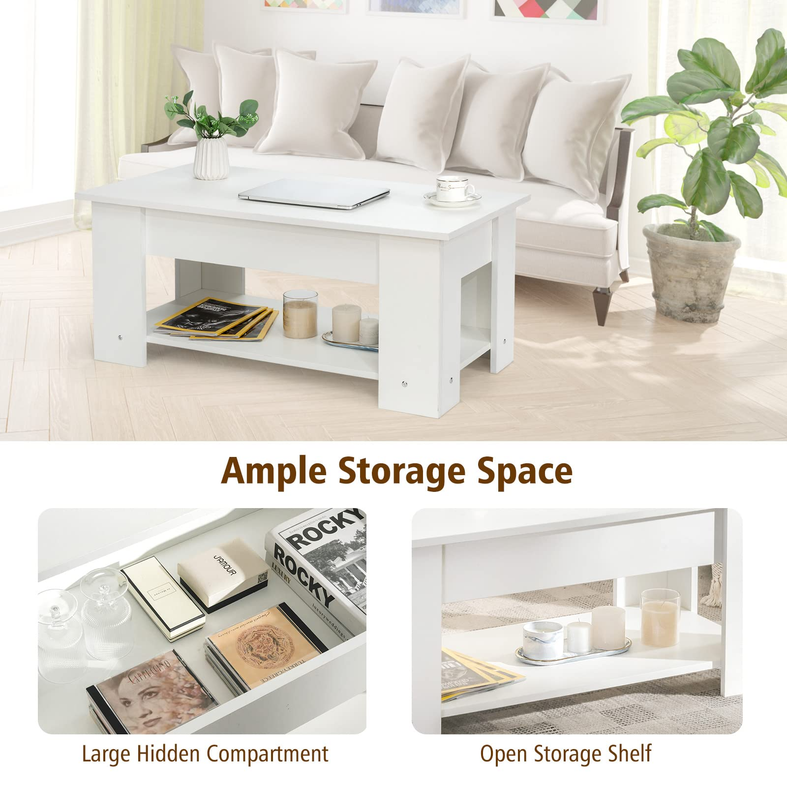 • Easy Lifting with Two Side Springs: Designed with the lifting table top, this coffee table will be more functional and practical. Two-side metal lifting mechanism provides powerful support that ensures a strong load capacity.