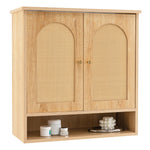 Enhance your bathroom decoration with this wall-mounted medicine cabinet, adding a rustic touch to your space with rattan doors.