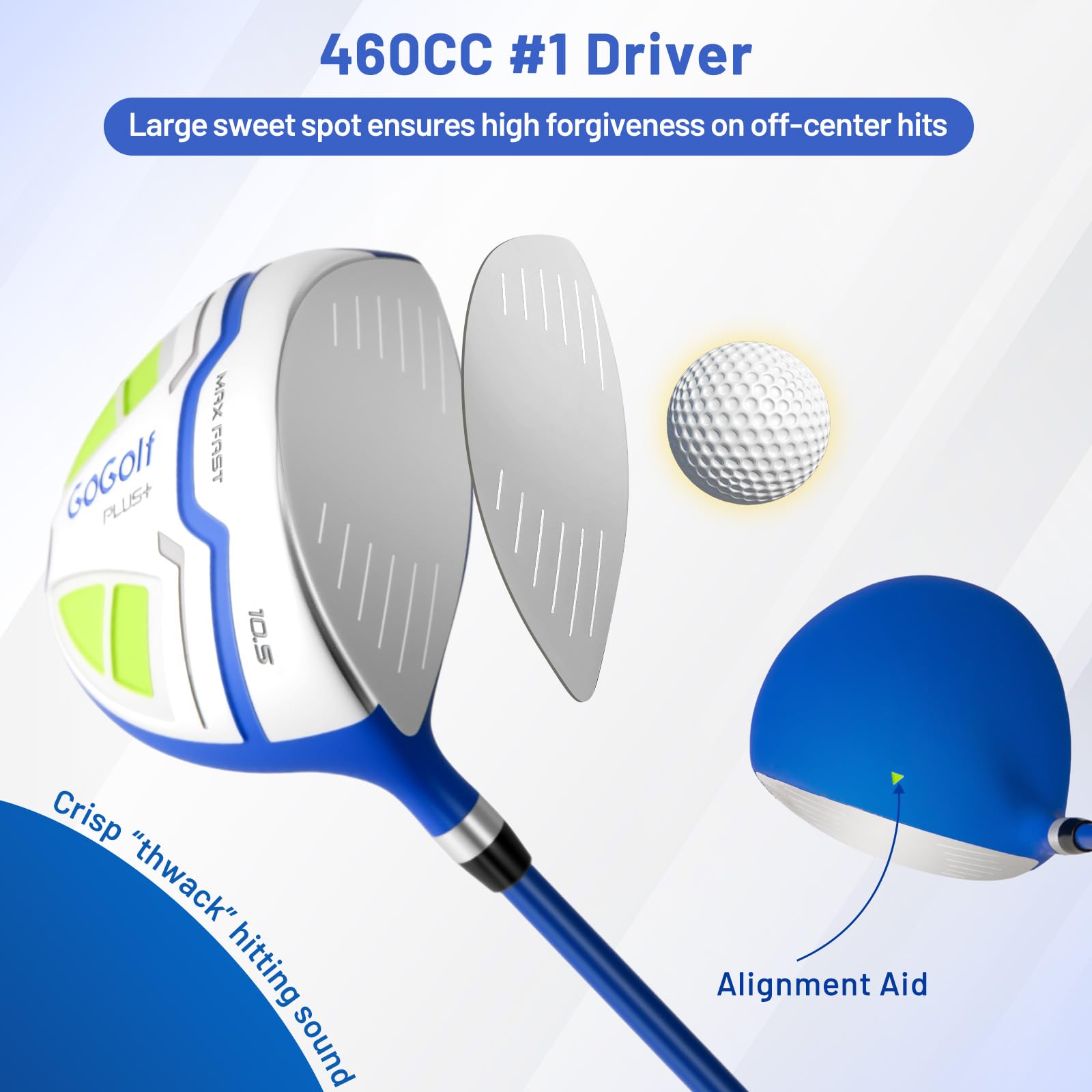 Includes a #1 driver, a #3 fairway, a #5 hybrid, and a full set of irons