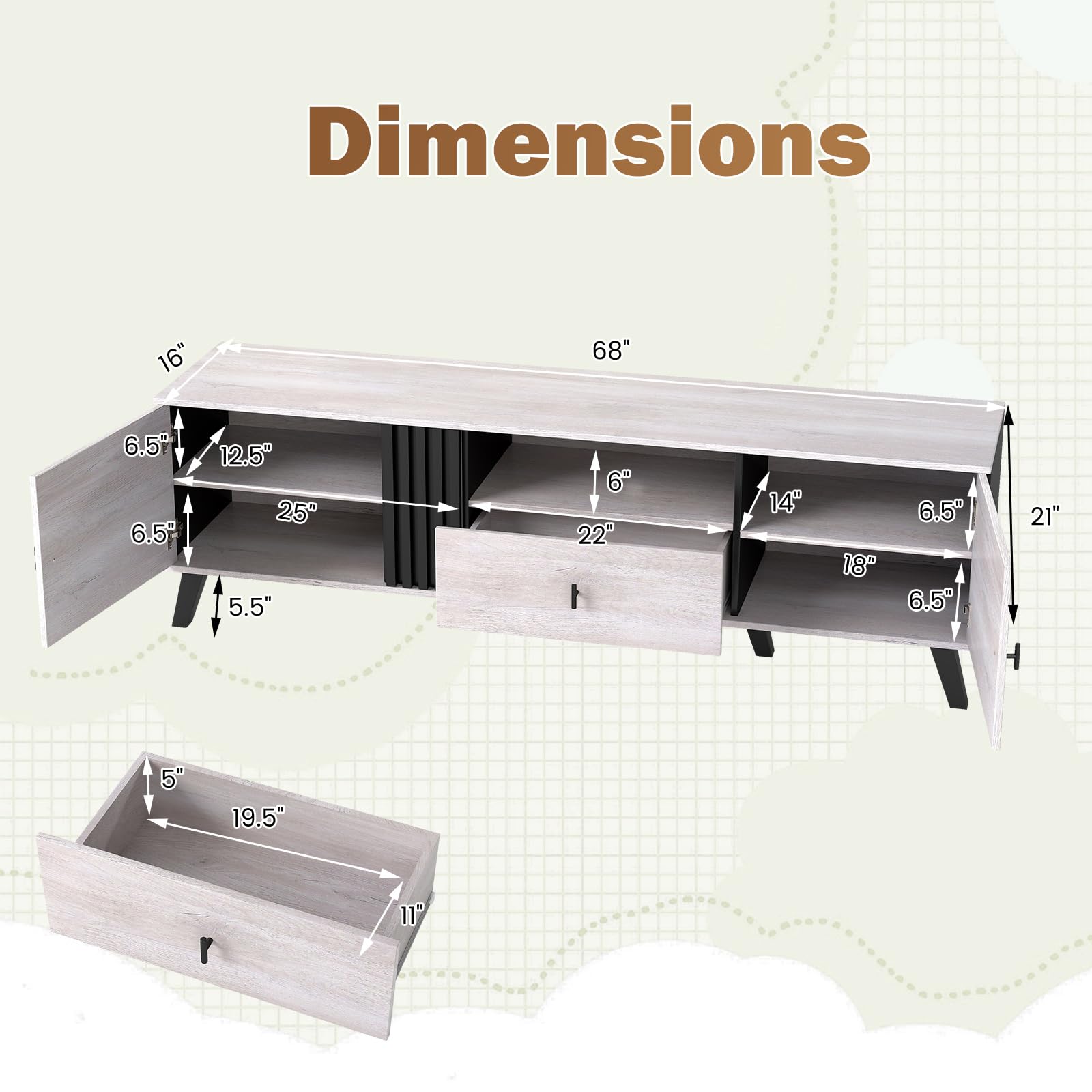 68” long tabletop is spacious enough to hold up to 80” TVs