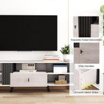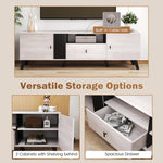 Step into a world where style meets functionality with our ultra-long TV stand - a perfect fit for up to 80” screens! Picture this: an elegant entertainment center with 2 doors that not only holds your audio equipment but enhances your room’s charm. Imagine the convenience of having all your essentials neatly organized within reach, thanks to our ample storage spaces including 2 cabinets with shelving behind, a spacious drawer, and an open shelf. Plus, its sturdy 6-leg design means no more wobbles, just seamless enjoyment. Gone are the days of messy wires, thanks to the integrated cable management hole.