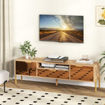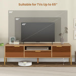 - Sufficient Storage Space: Featuring a spacious tabletop, this TV stand is suitable for TVs up to 65”. It also offers 1 open shelf, 1 pull-out drawer and 2 side cabinets that can easily accommodate your game consoles, books, magazines, and more.