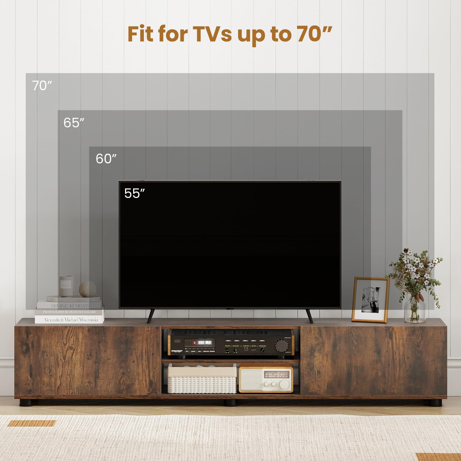 Spacious tabletop fits for TVs up to 70”